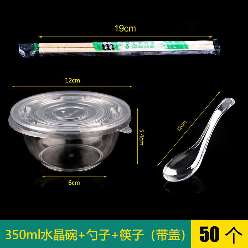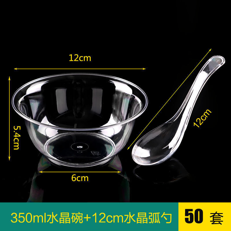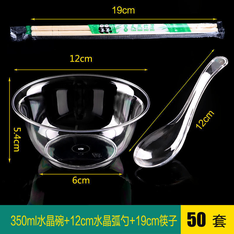 一次性碗筷批发水晶碗套装加厚塑料透明硬质餐具酒席圆形打包碗碗