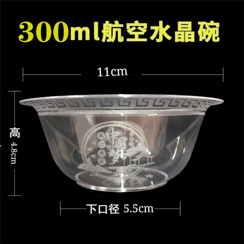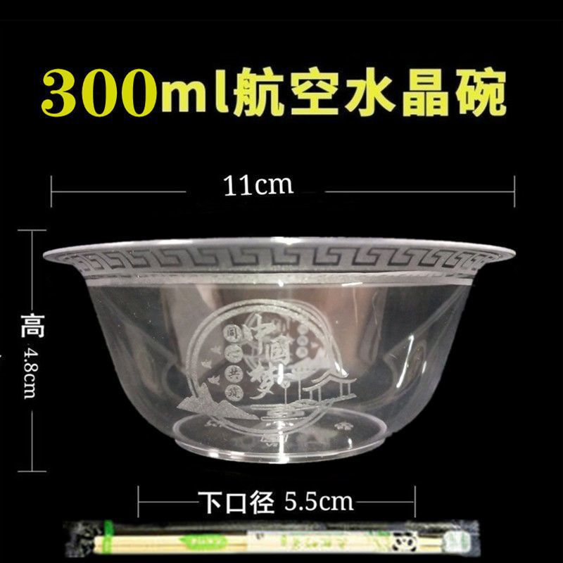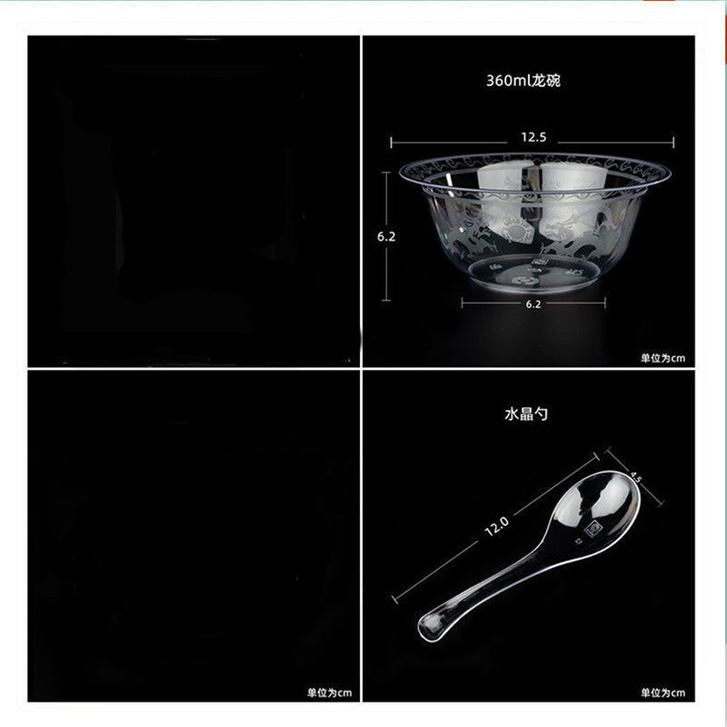一次性碗圆形航空水晶塑料商用家用饭店小吃碗筷套装汤碗流水宴席