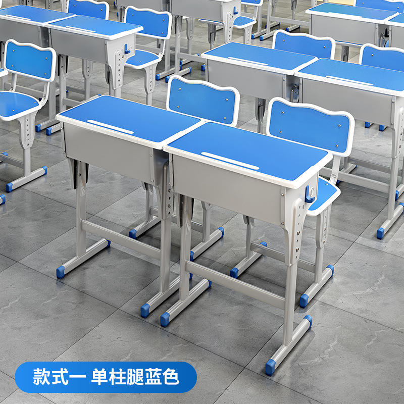 加厚款单柱课桌+凳【蓝白】 包邮