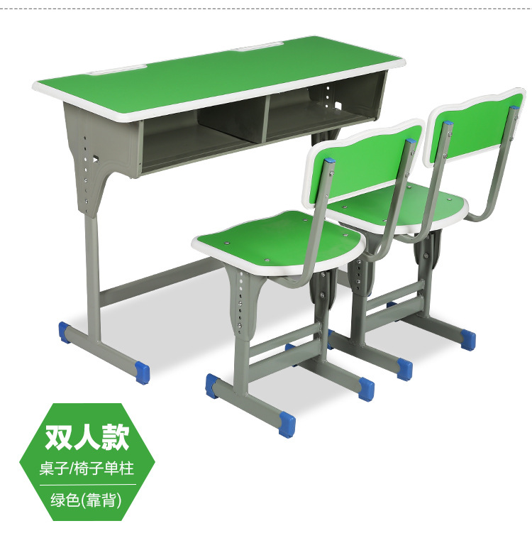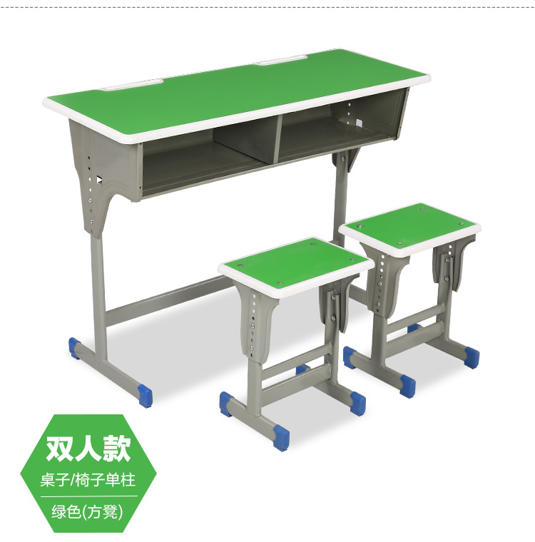 加厚款双柱课桌+椅【灰色】 包邮