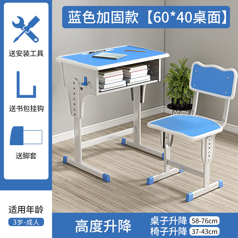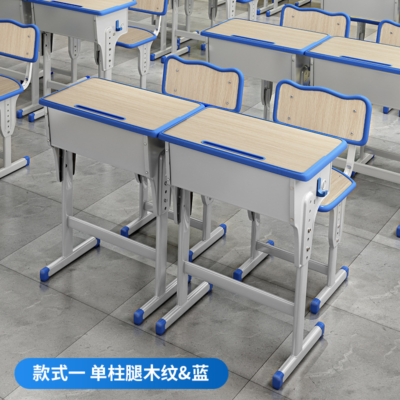 加厚款单柱课桌+椅【蓝白】 包邮