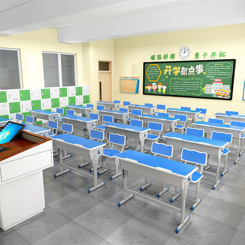 加厚款双柱课桌+椅【蓝白】 包邮