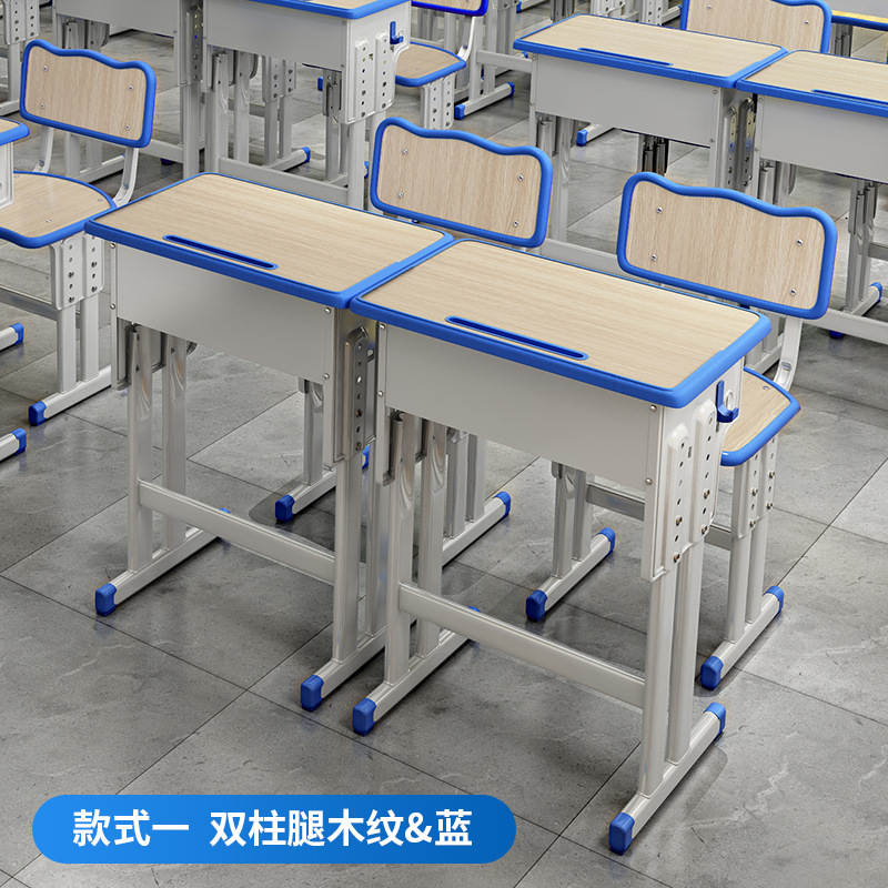 加厚款双柱课桌+凳【蓝白】 包邮