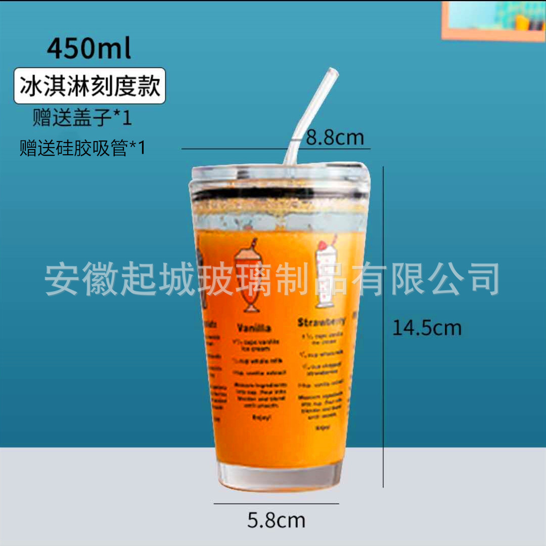 新款刻度早餐杯带吸管杯创意礼品玻璃杯带盖玻璃杯网红玻璃杯