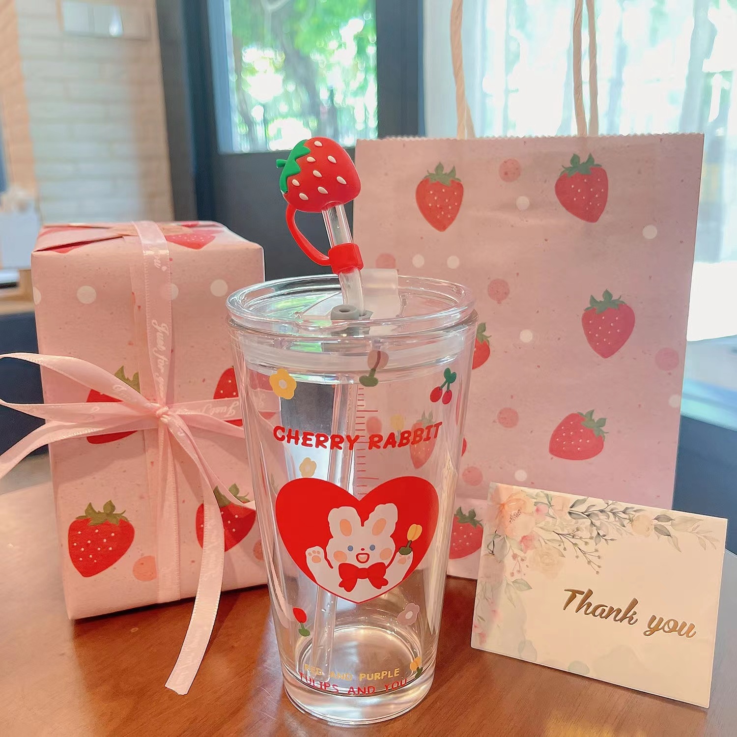 爱心兔+盖+玻璃吸管+草莓头一件60只:401-500ml