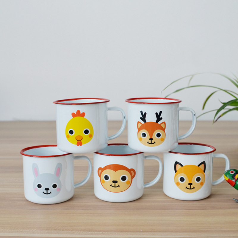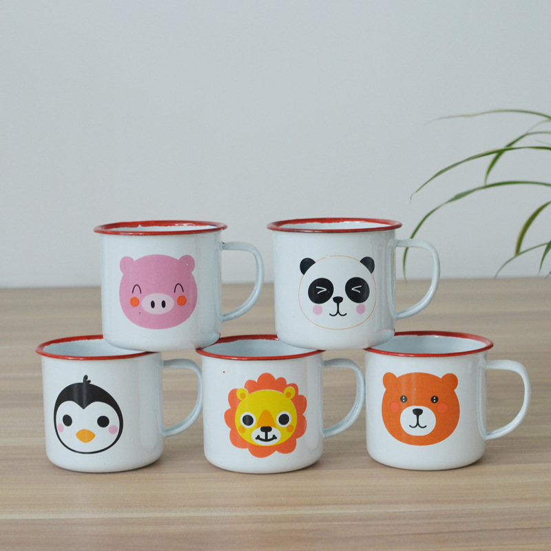 加厚幼儿园儿童水杯小号迷你可爱卡通动物搪瓷杯子定制创意马克杯