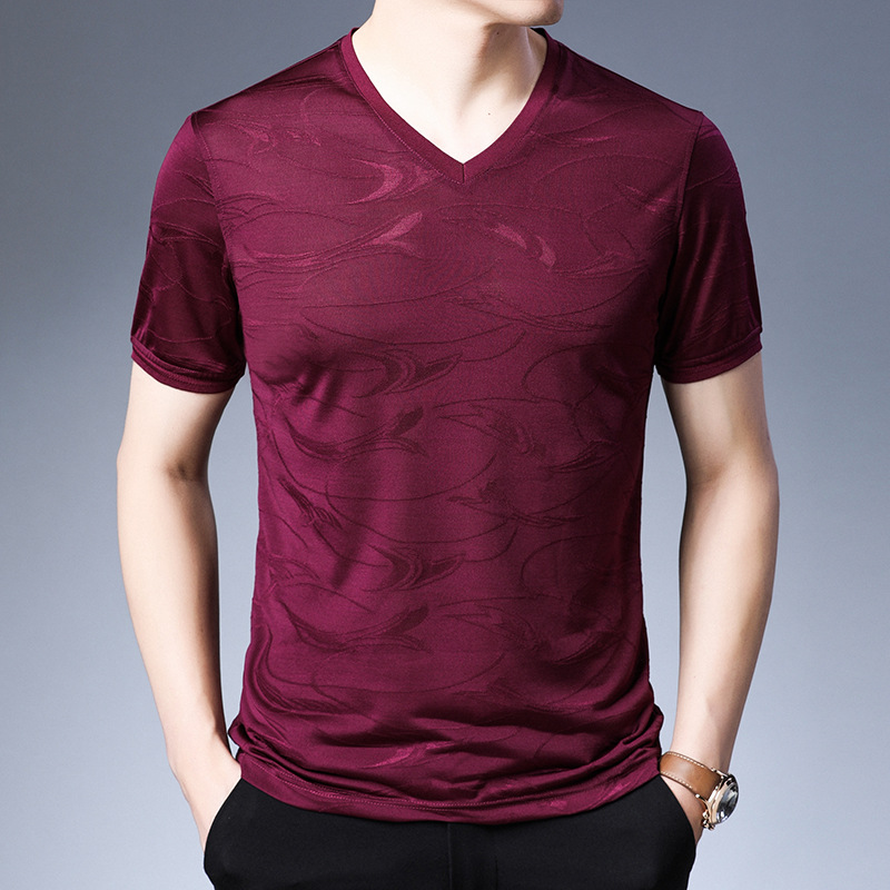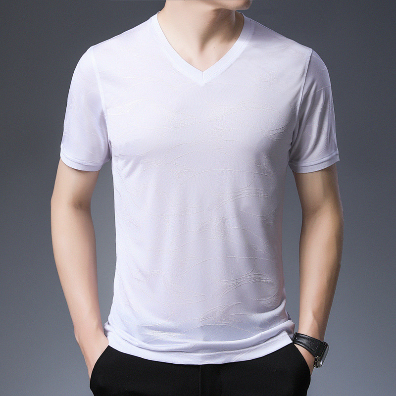 工厂店夏季冰丝t恤男士短袖薄款修身2023新款潮流透气v领半袖体恤