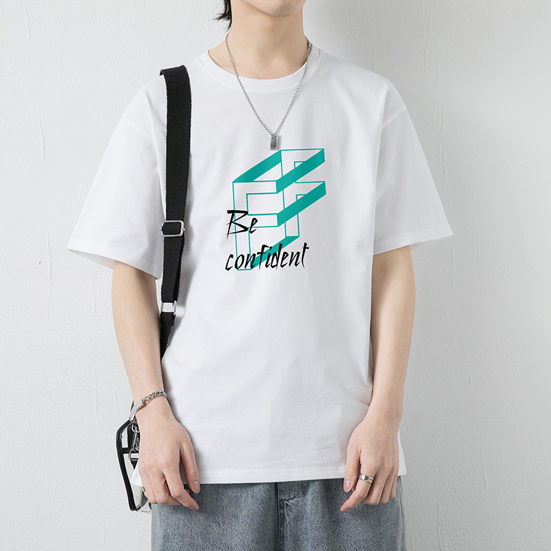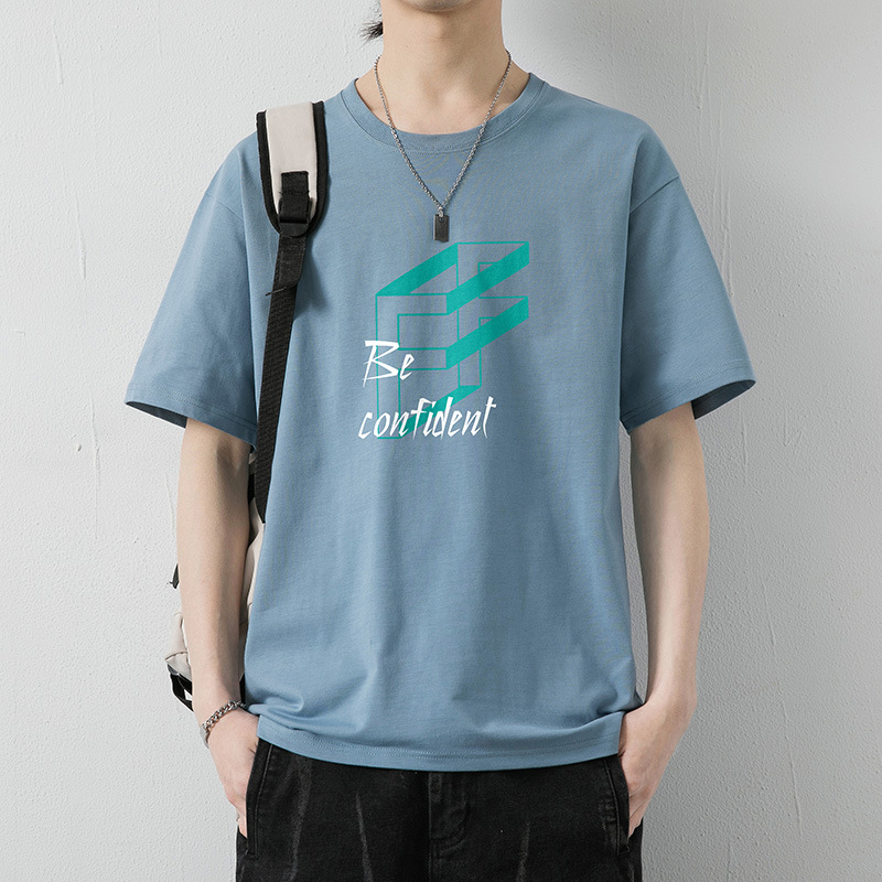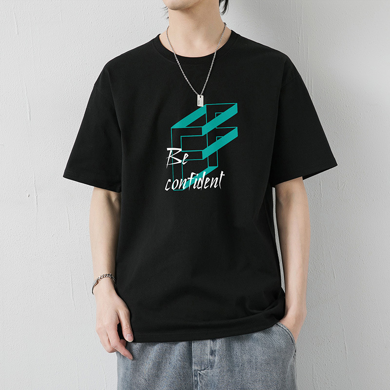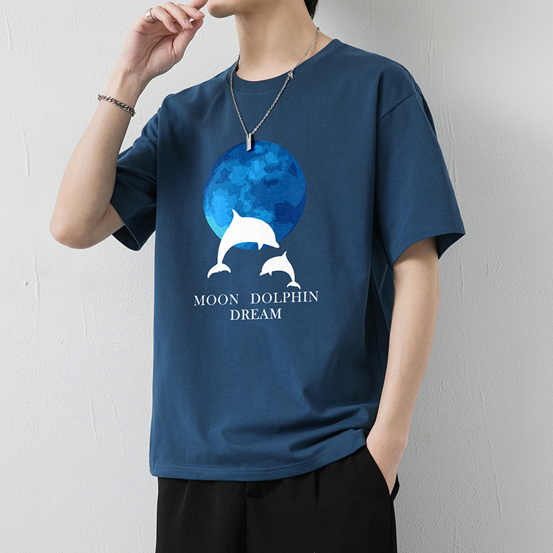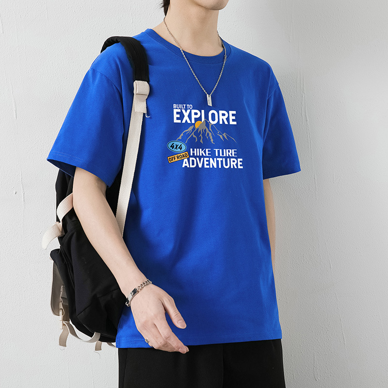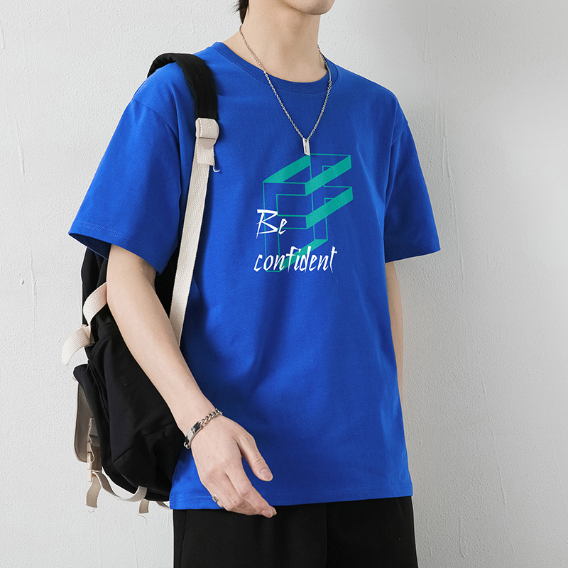 大码纯棉短袖T恤男2023夏季新款港风半袖体恤男纯色冰丝体恤男装T