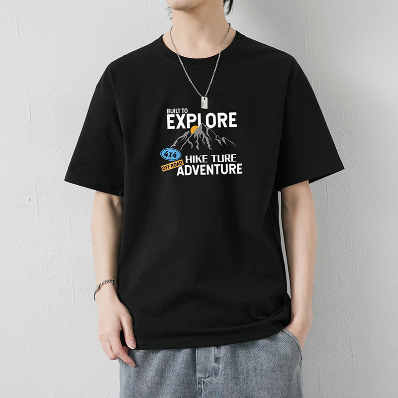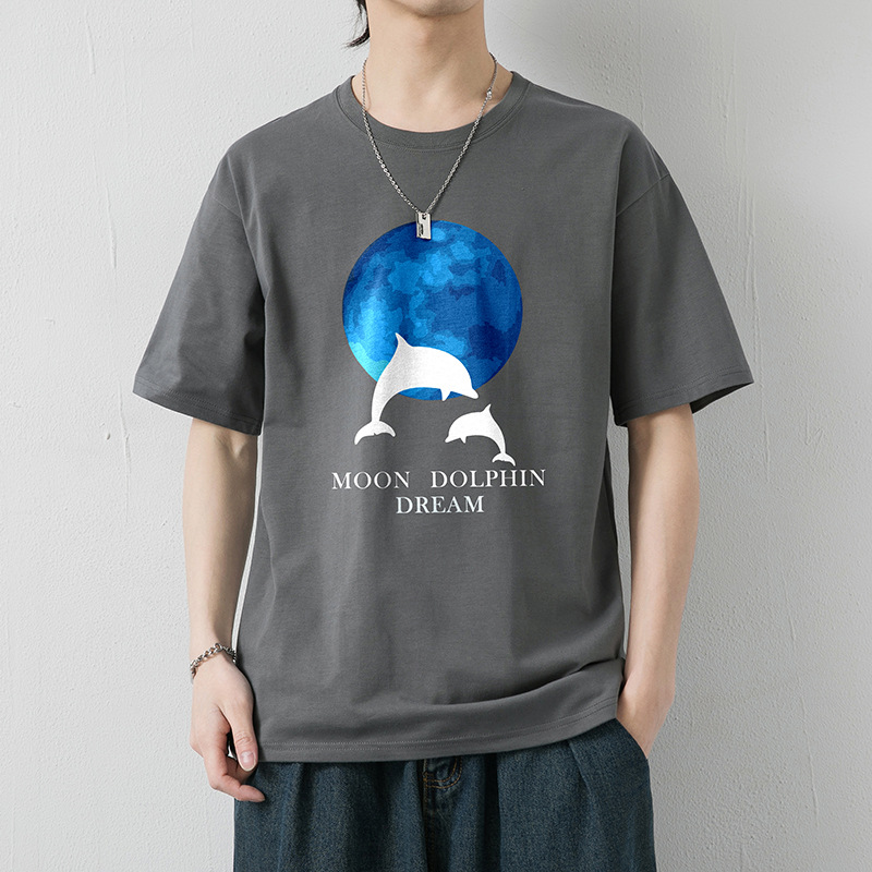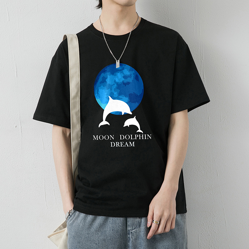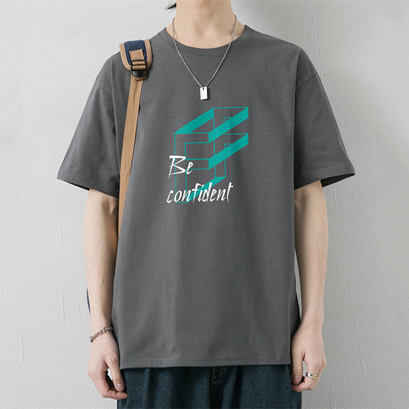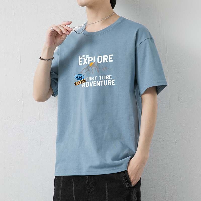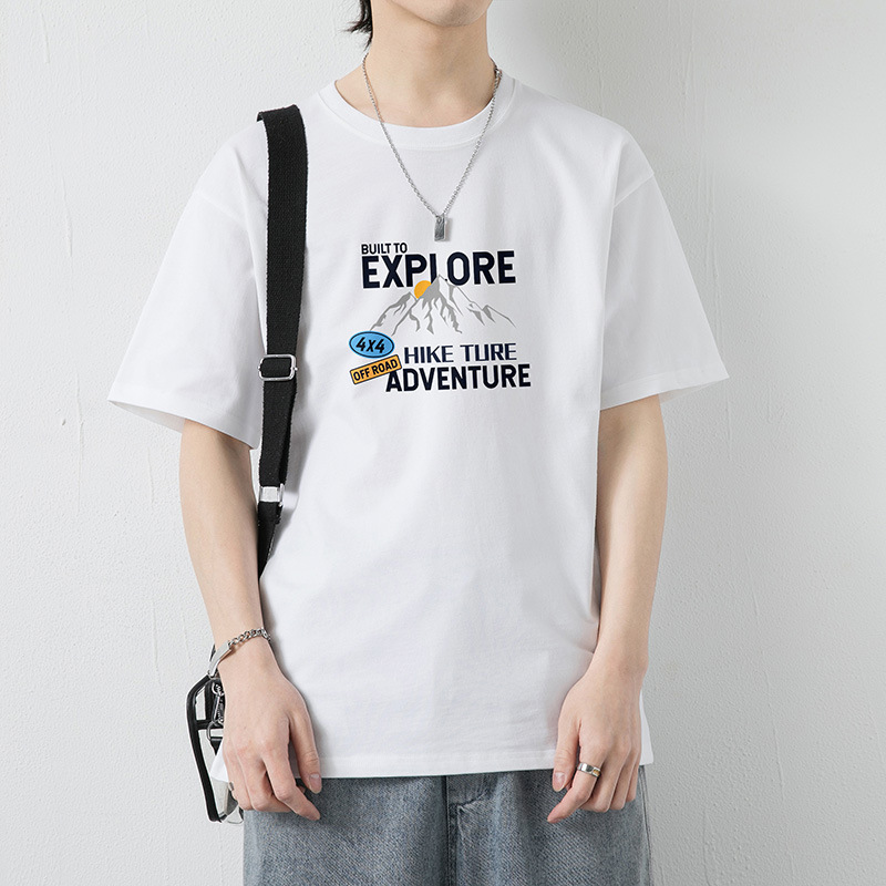 大码纯棉短袖T恤男2023夏季新款港风半袖体恤男纯色冰丝体恤男装T
