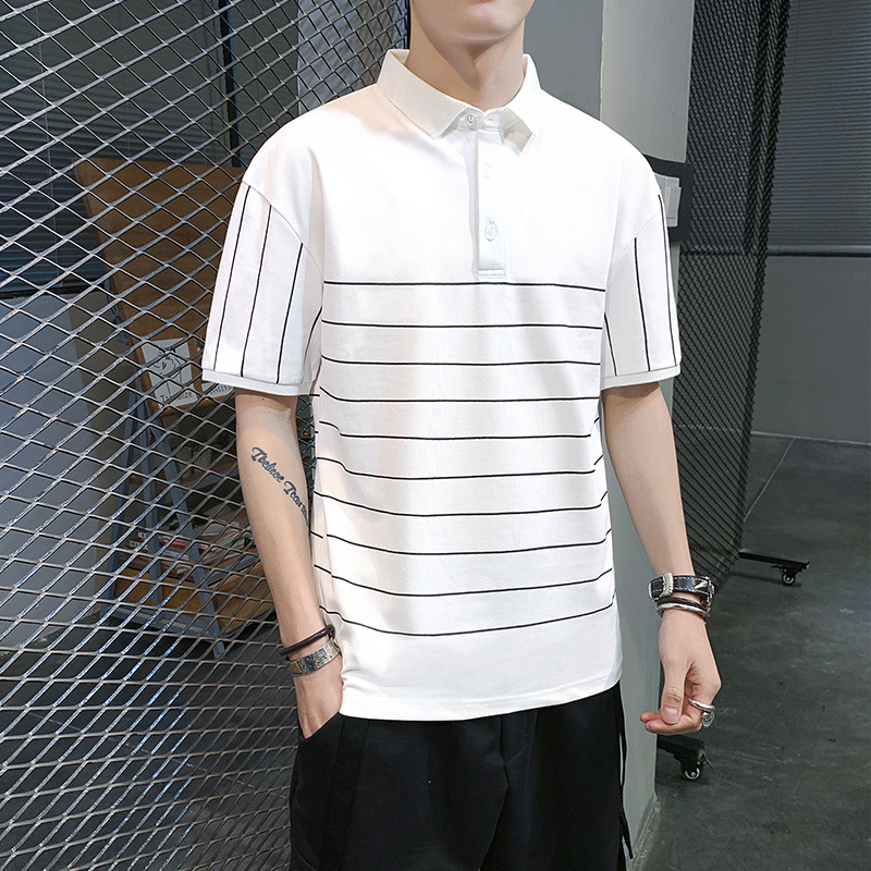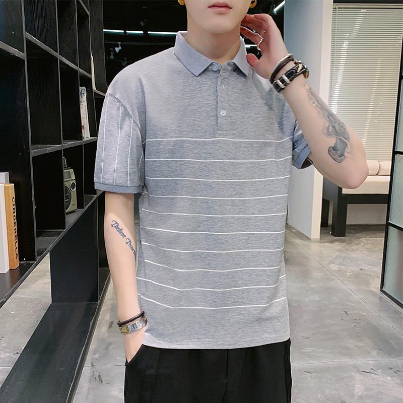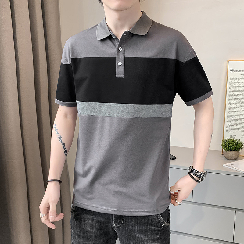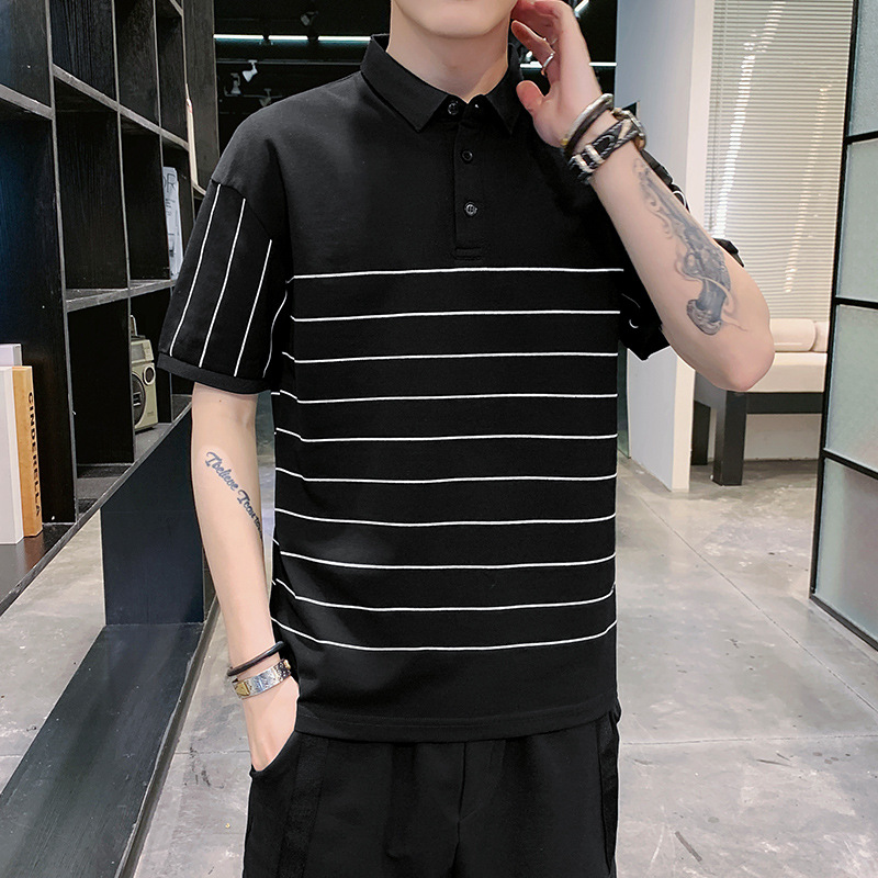 夏季短袖t恤男潮流冰丝翻领POLO衫男士修身棉质有领上衣帅气男装