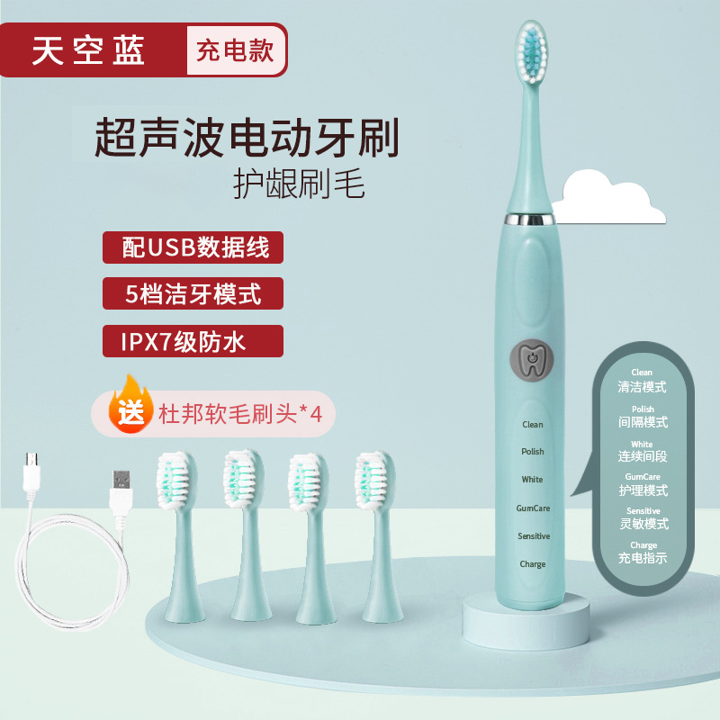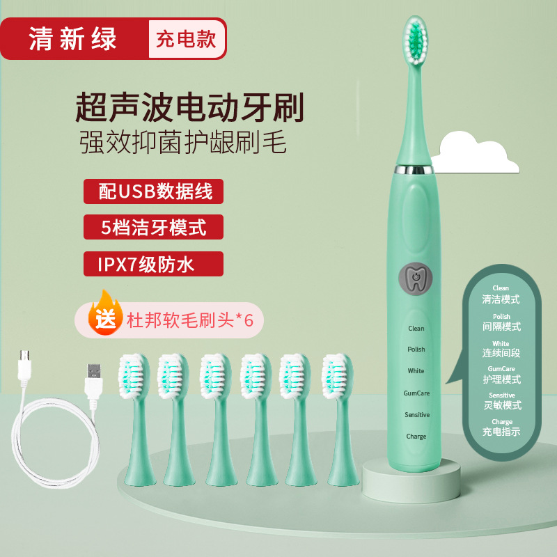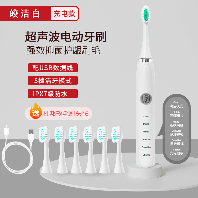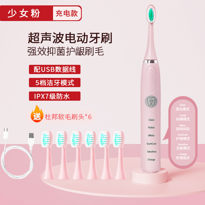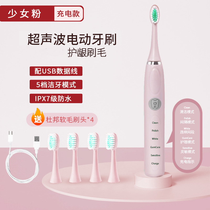 厂家批发电动牙刷成人款充电款声波细软毛情侣款套装男女学生党