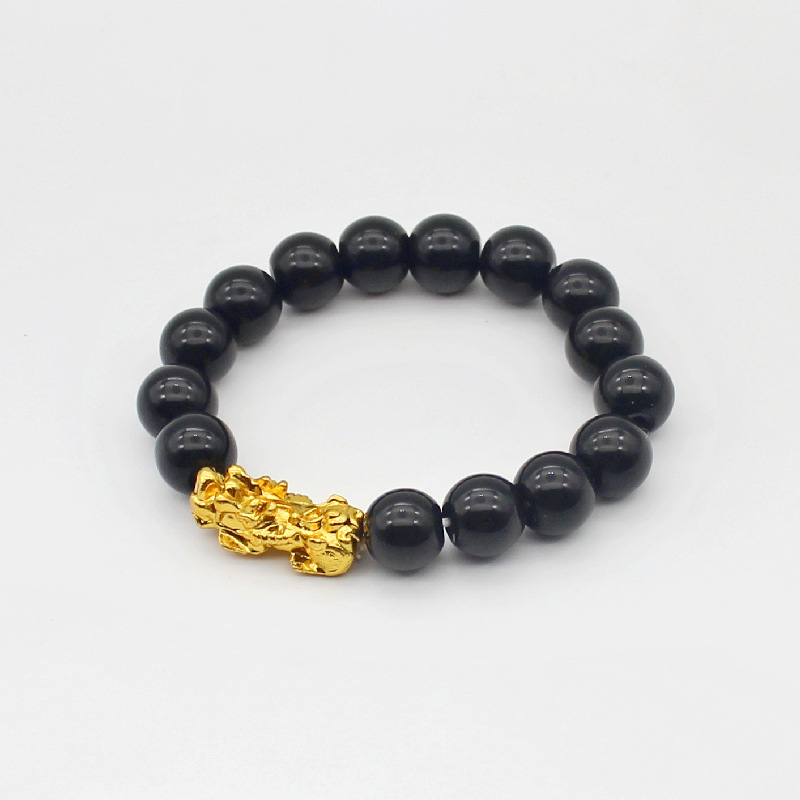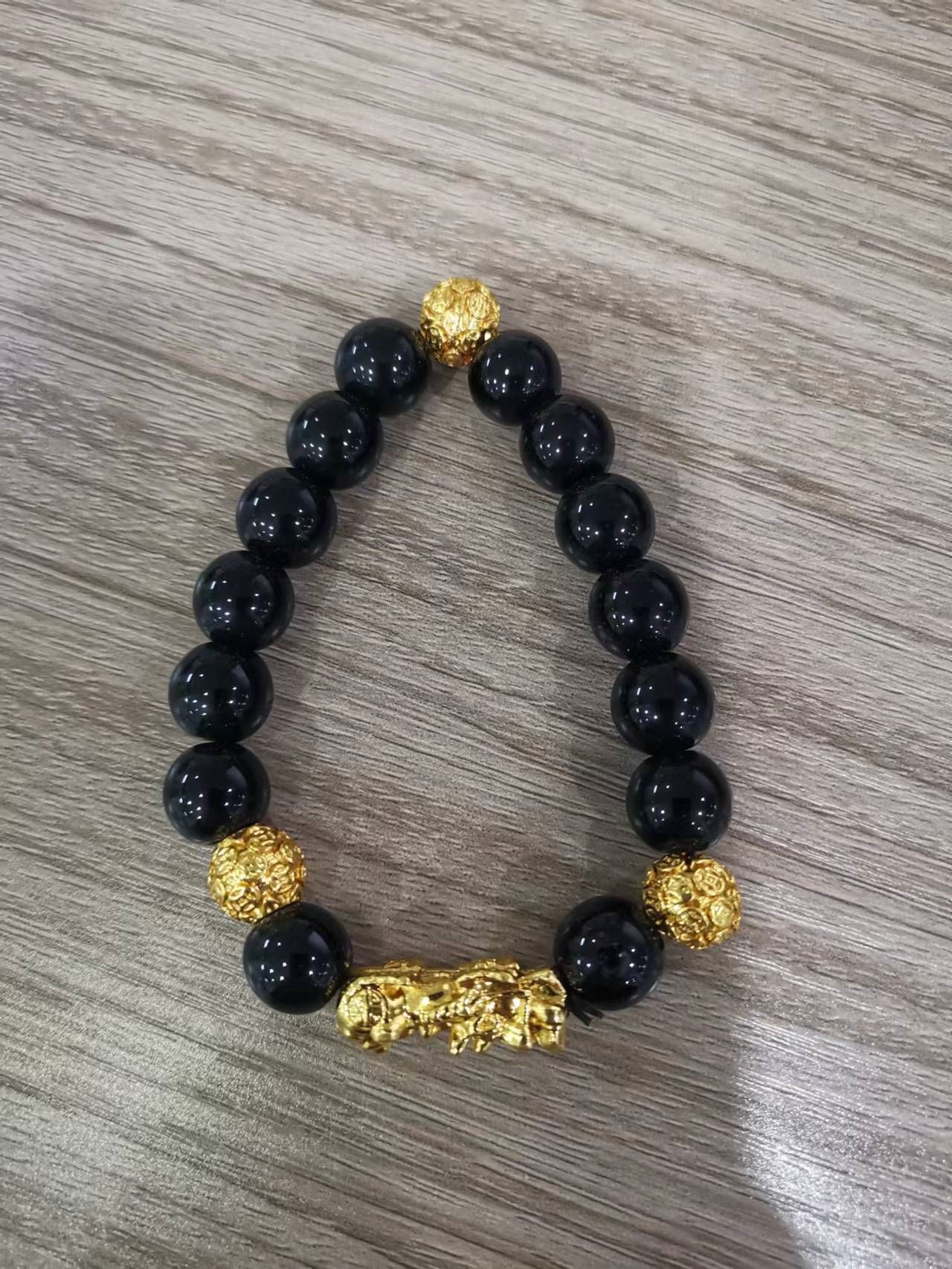 仿越南沙金貔貅手链男士百搭六字箴言黑曜石玛瑙珠手串引流代发