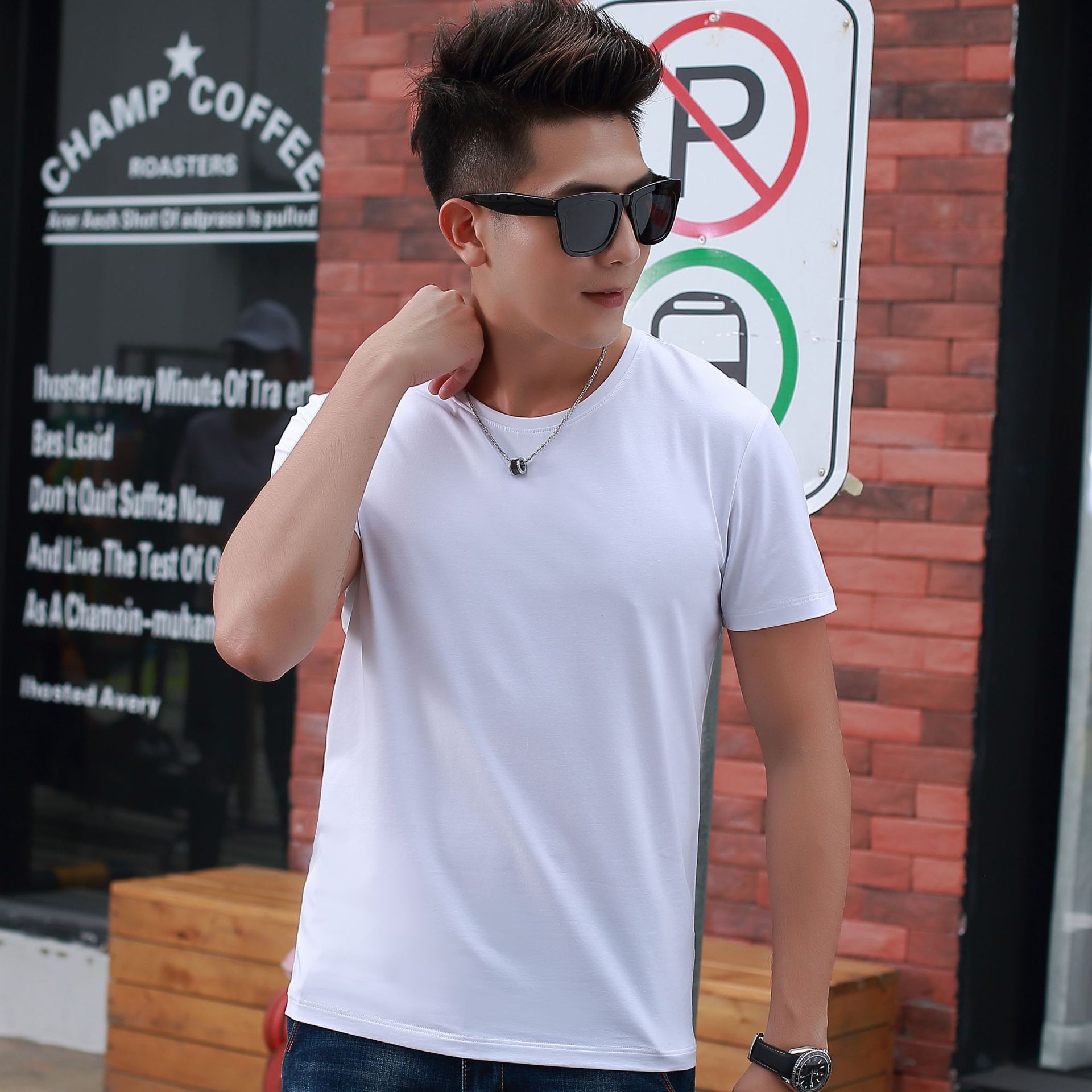 热升华纯色莫代尔T恤印图热转印空白广告衫圆领短袖班服定制DIY