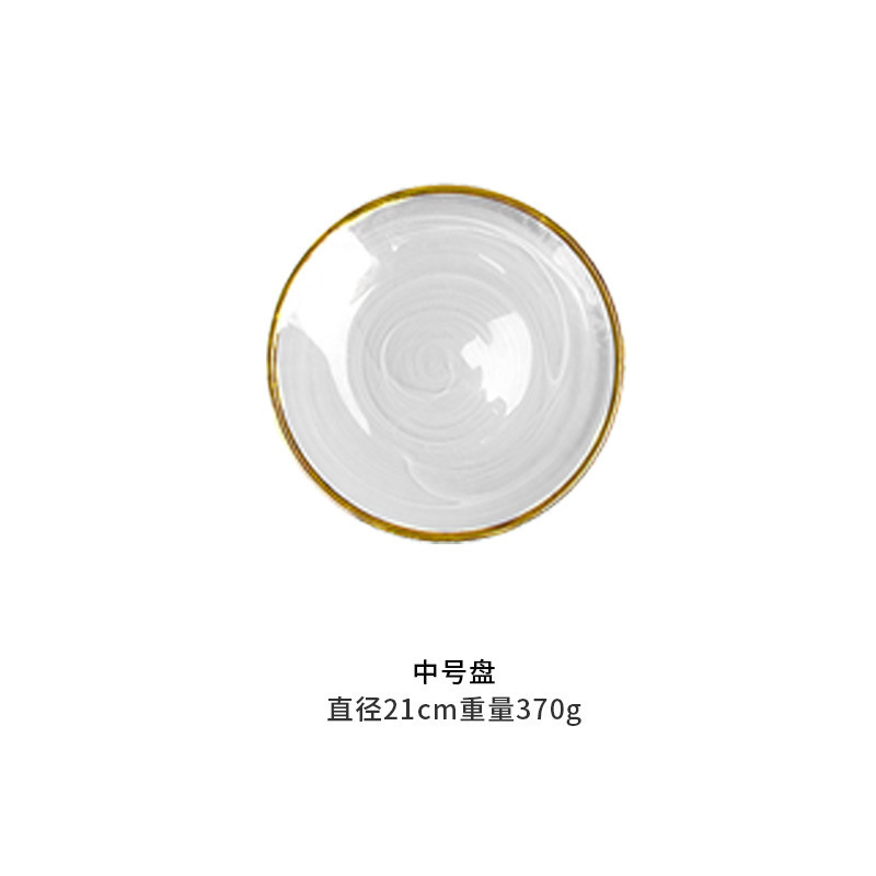 金边白色云雾盘21CM