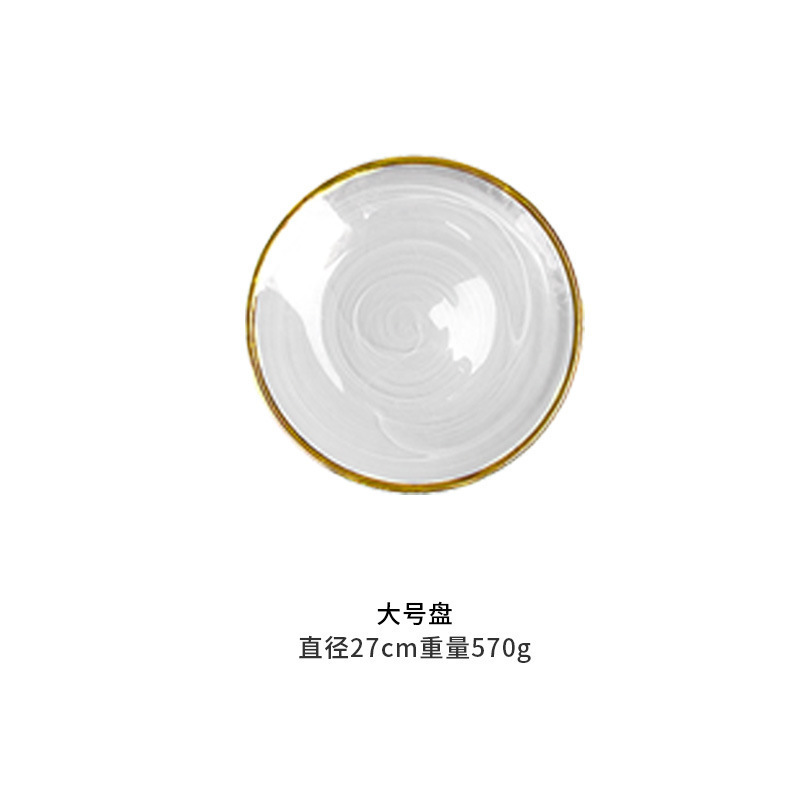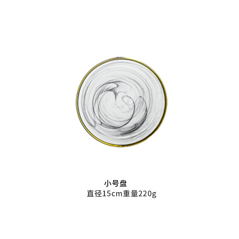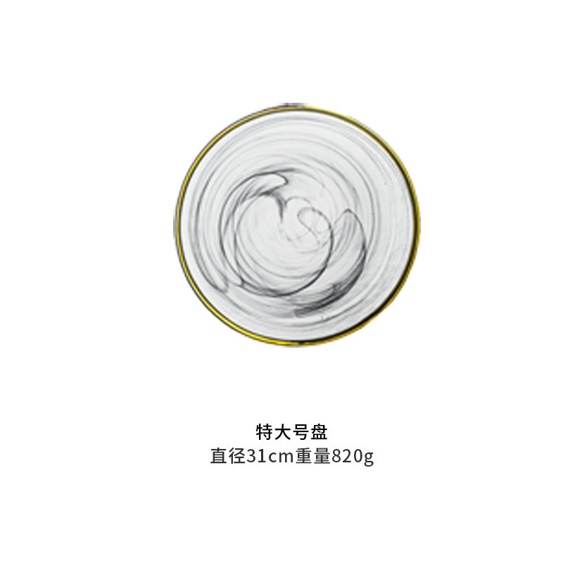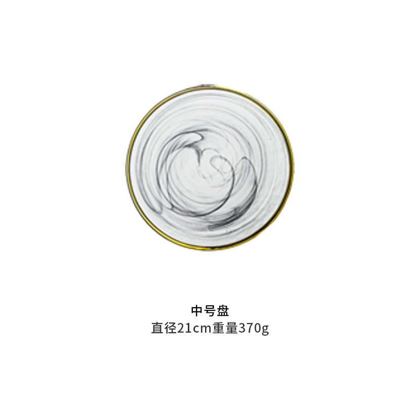 现代简约金边碗碟玻璃套装黑色云雾盘家用水墨客厅装饰西餐盘