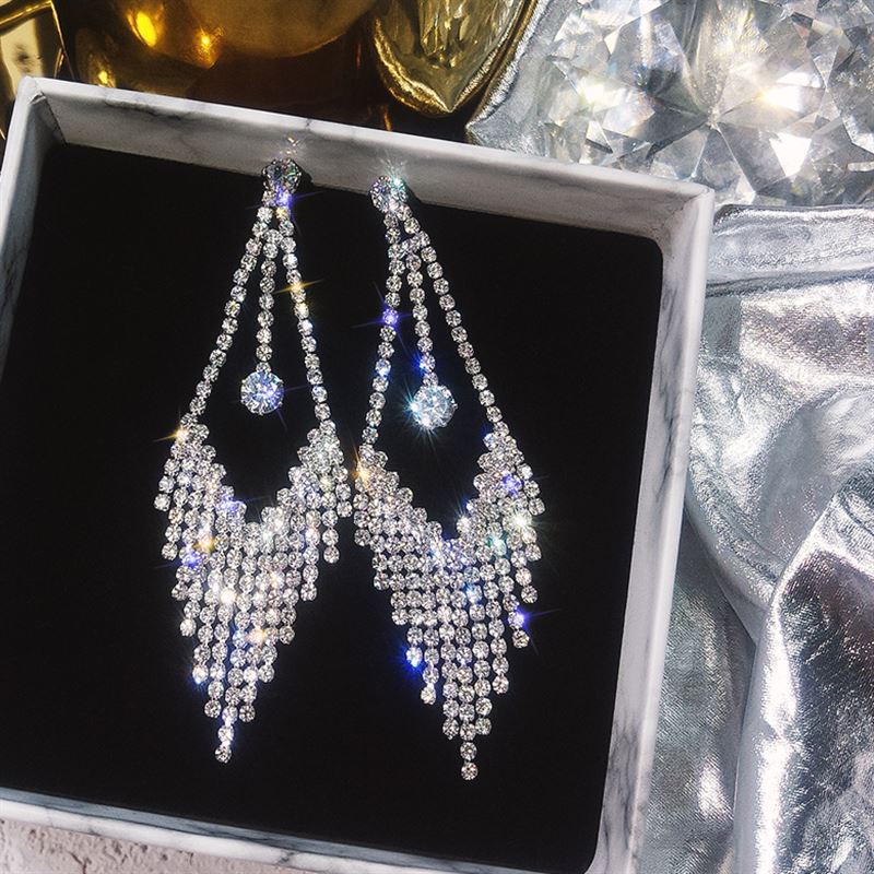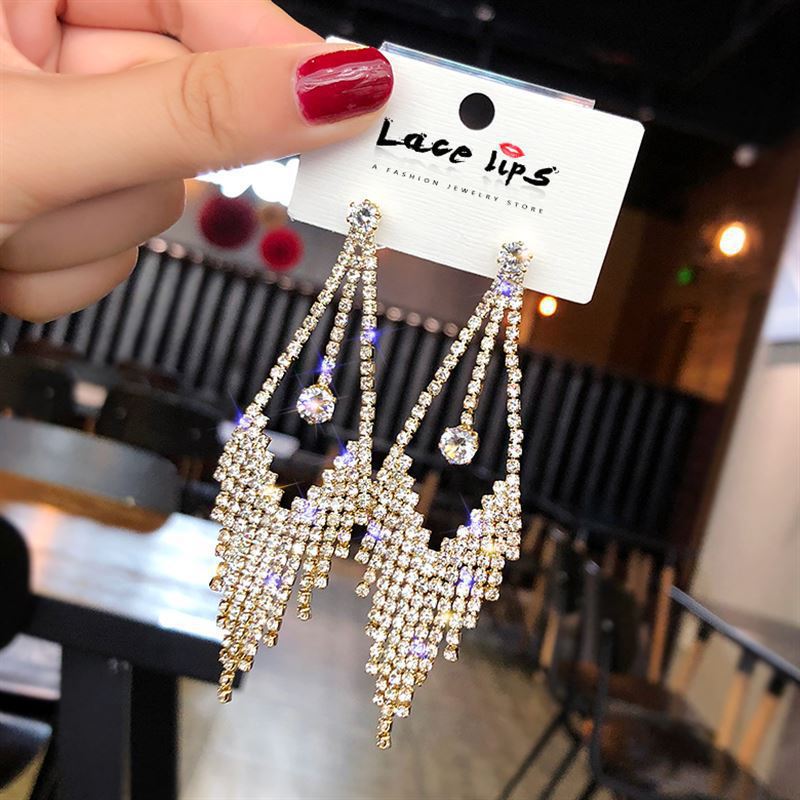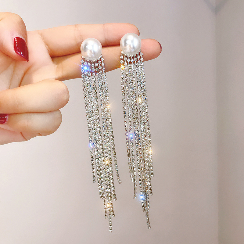 新款潮流夜店闪钻并多多气质仙女珍珠耳环高质量网红耳钉饰品批发