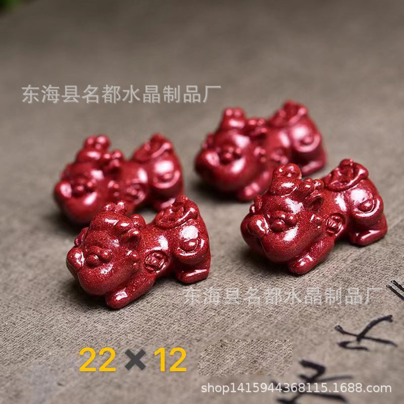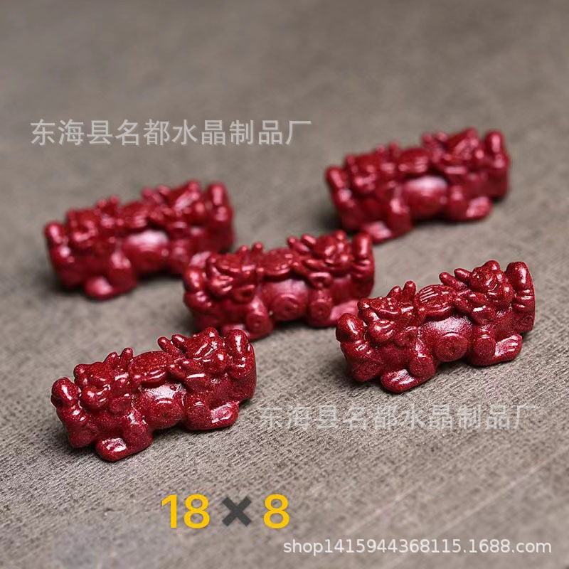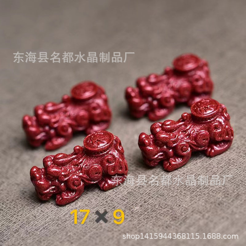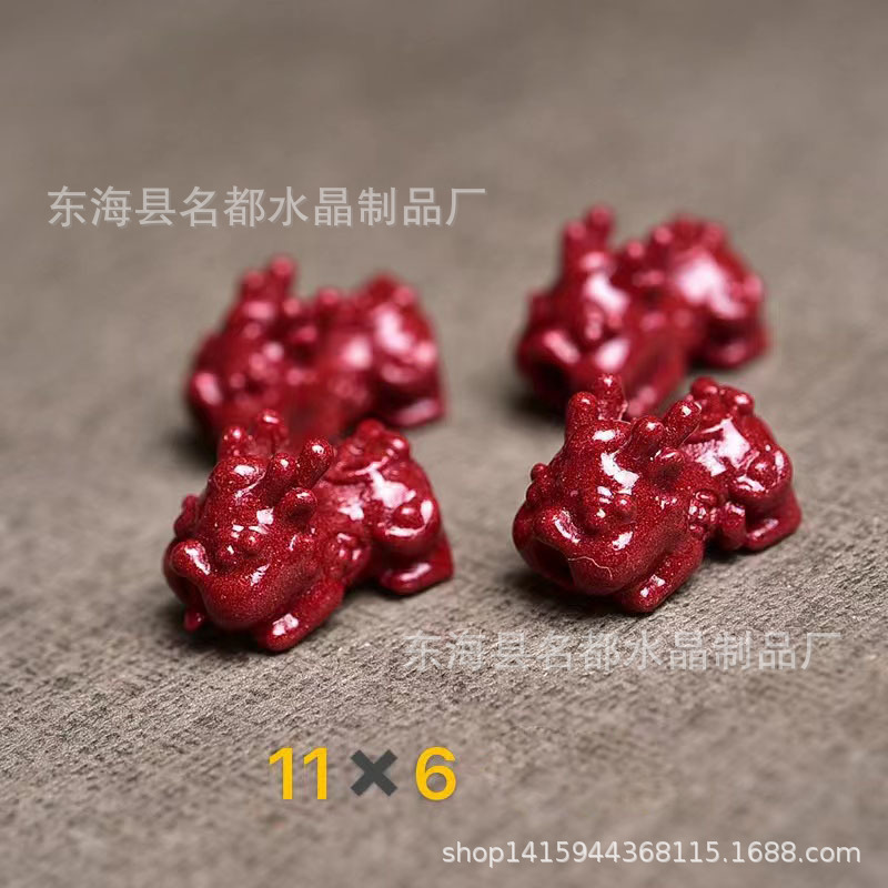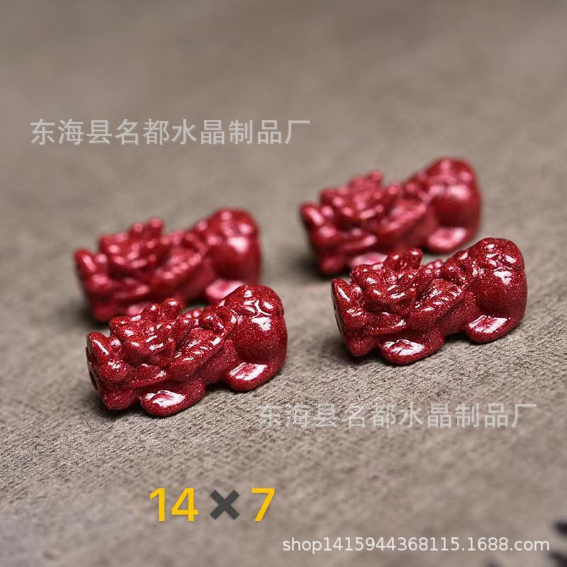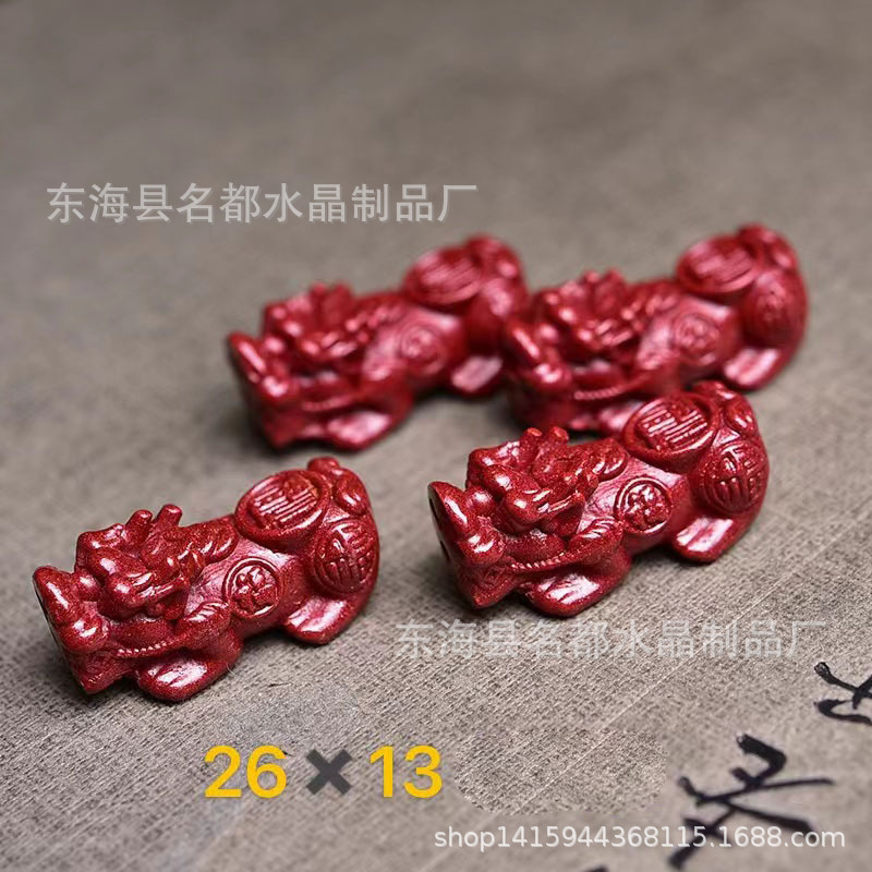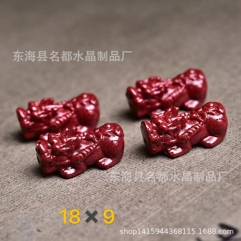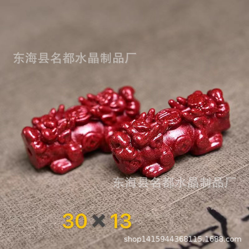 名都水晶 天然原矿朱砂貔貅配件 横穿 紫砂孔貔貅 手链配饰 批发