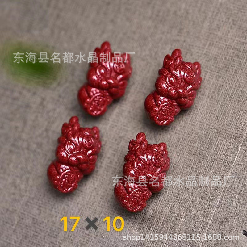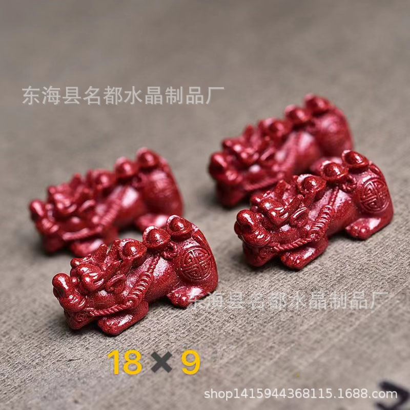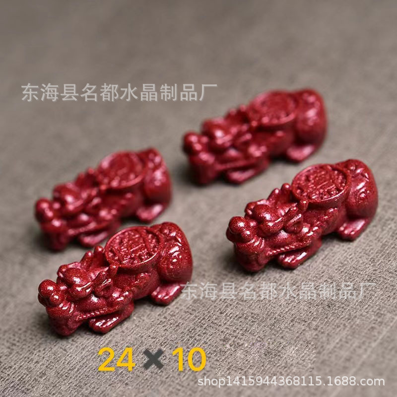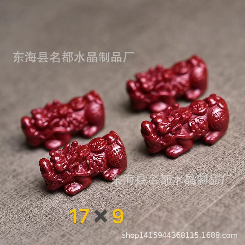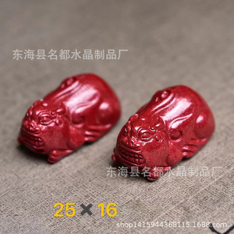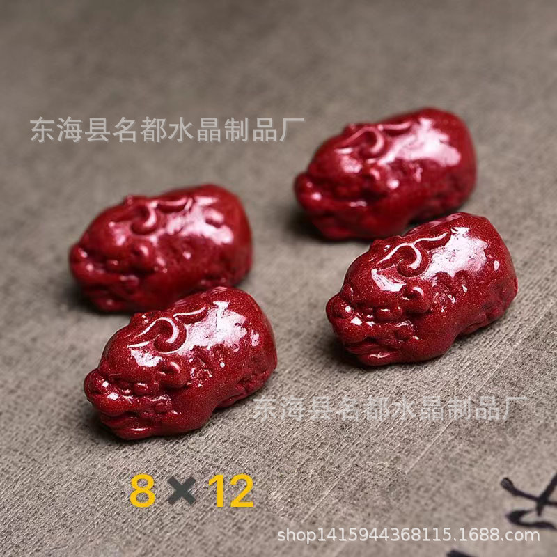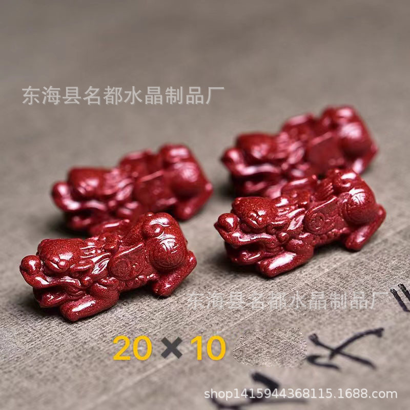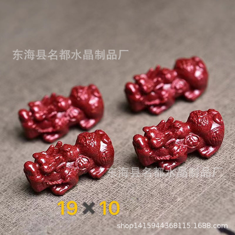 名都水晶 天然原矿朱砂貔貅配件 横穿 紫砂孔貔貅 手链配饰 批发