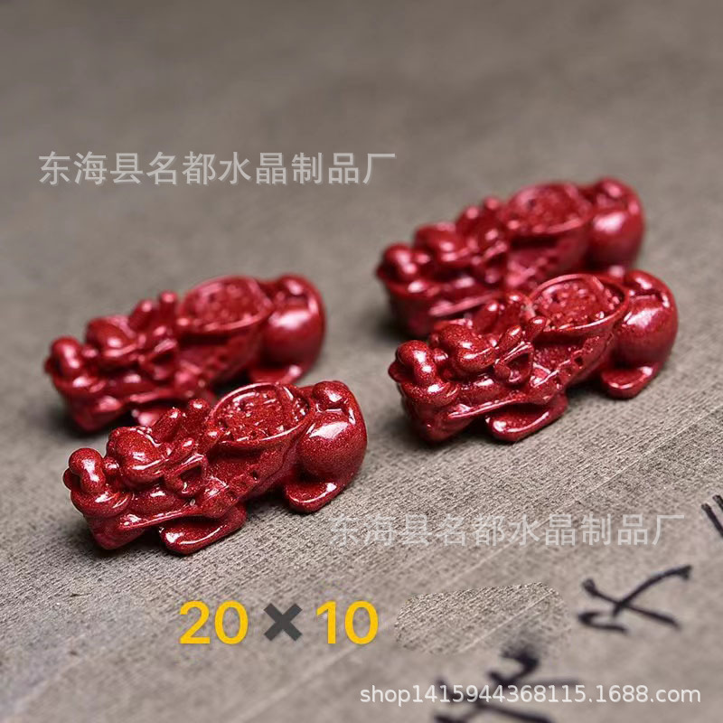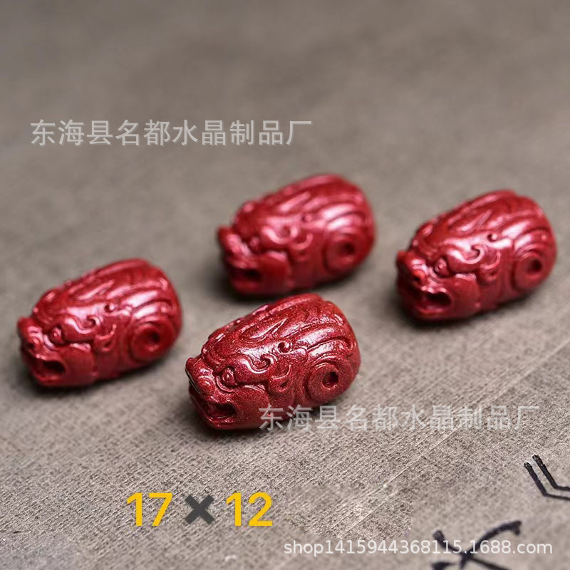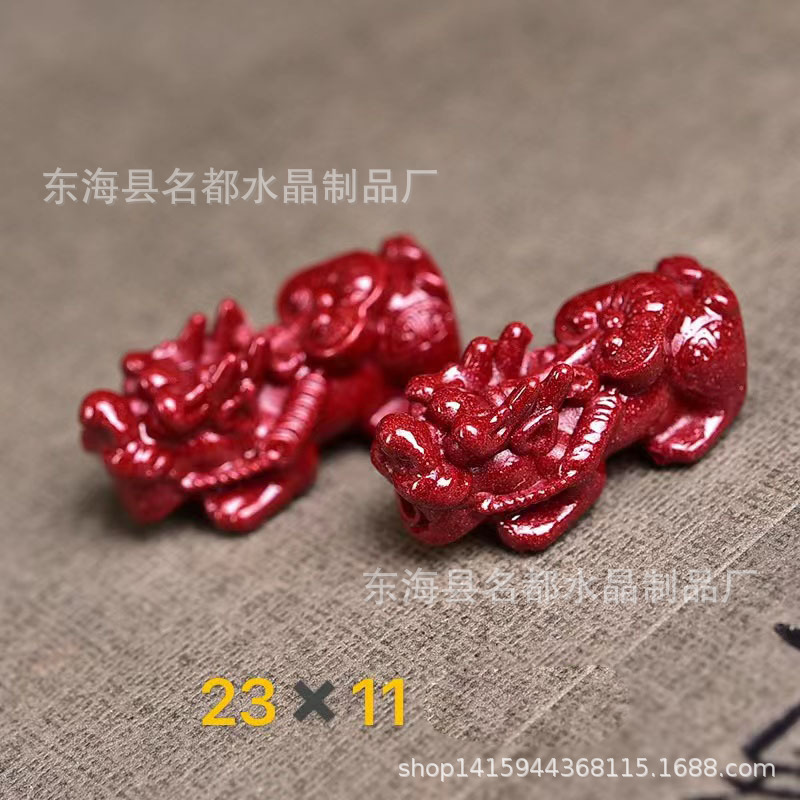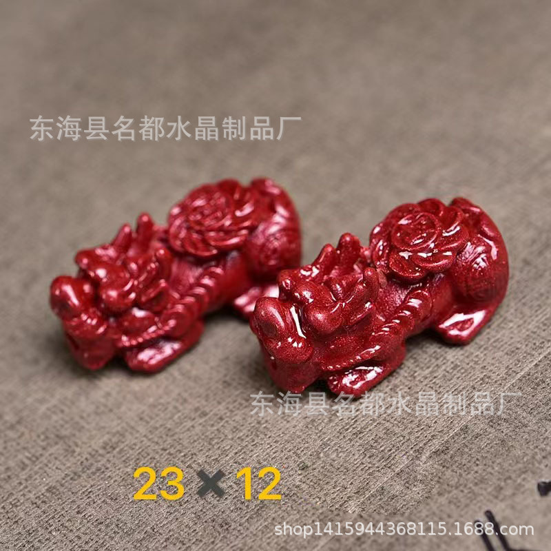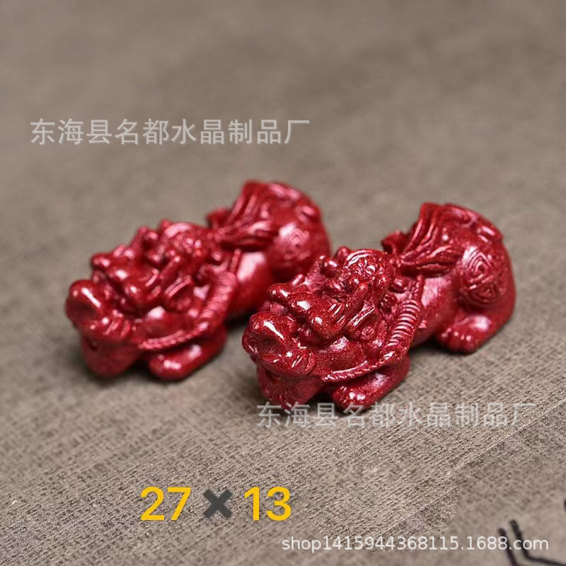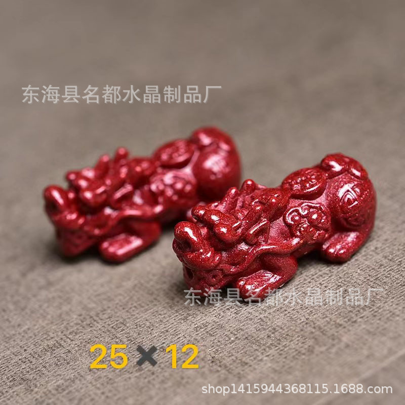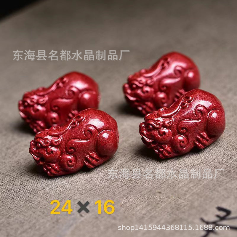 名都水晶 天然原矿朱砂貔貅配件 横穿 紫砂孔貔貅 手链配饰 批发
