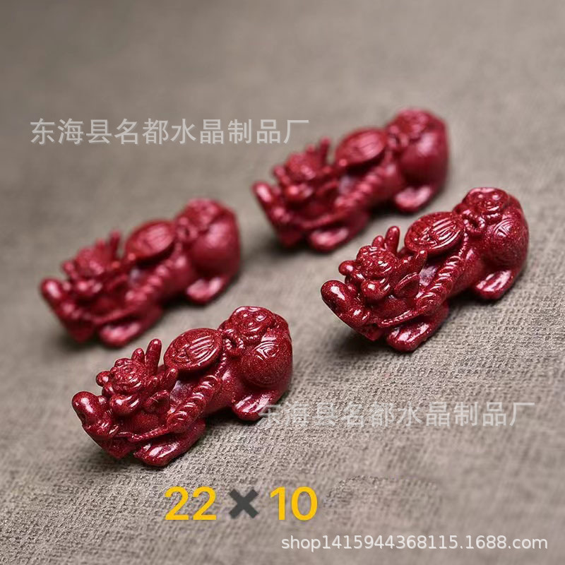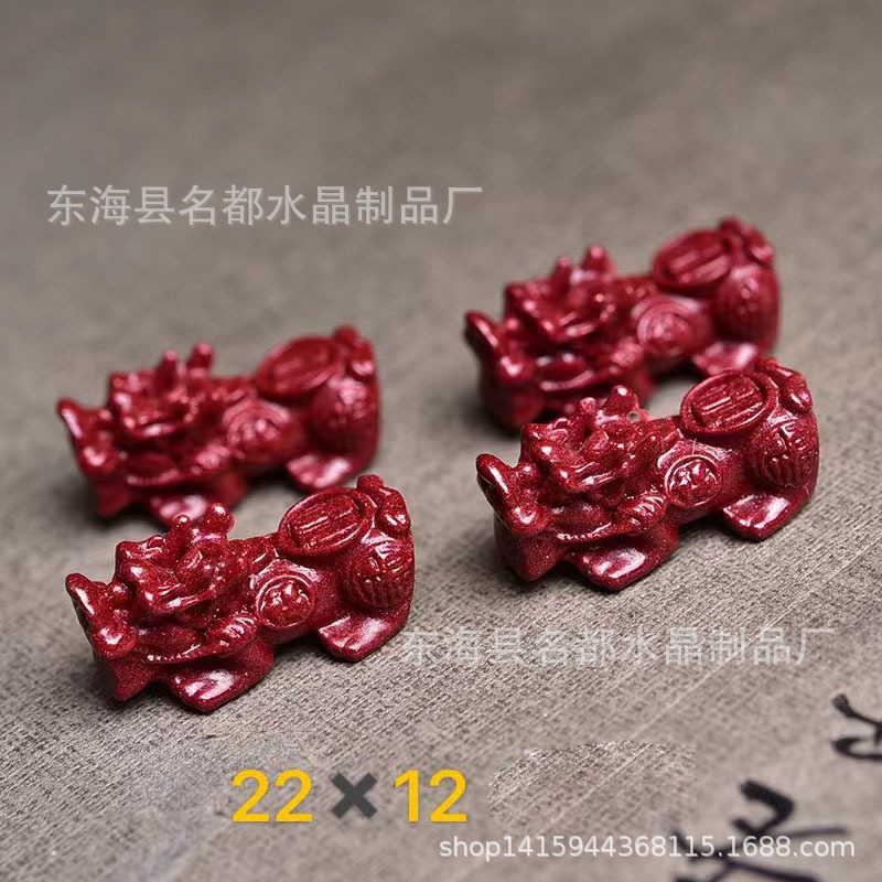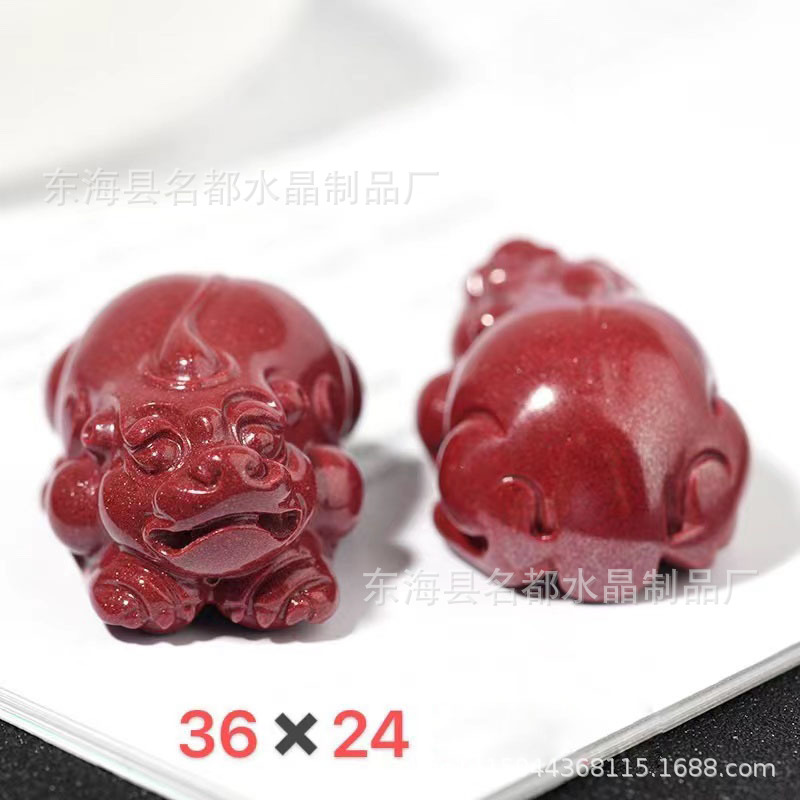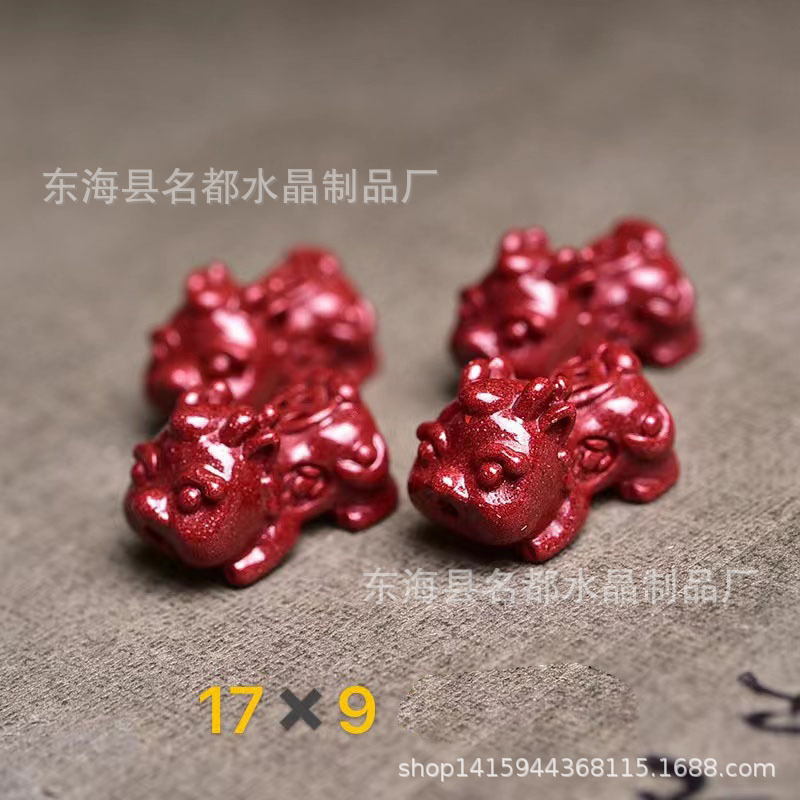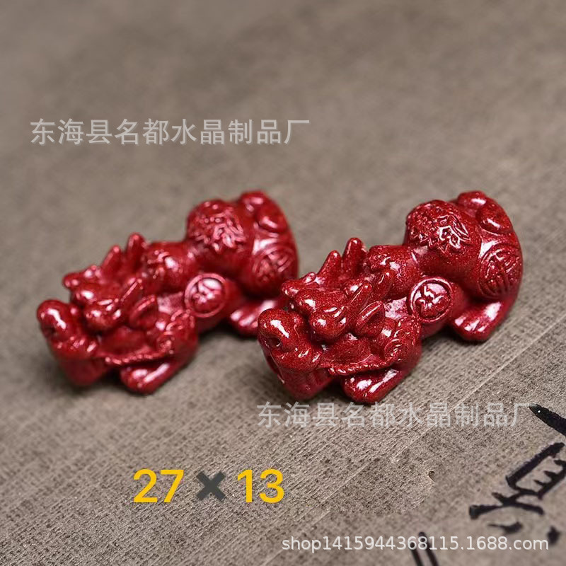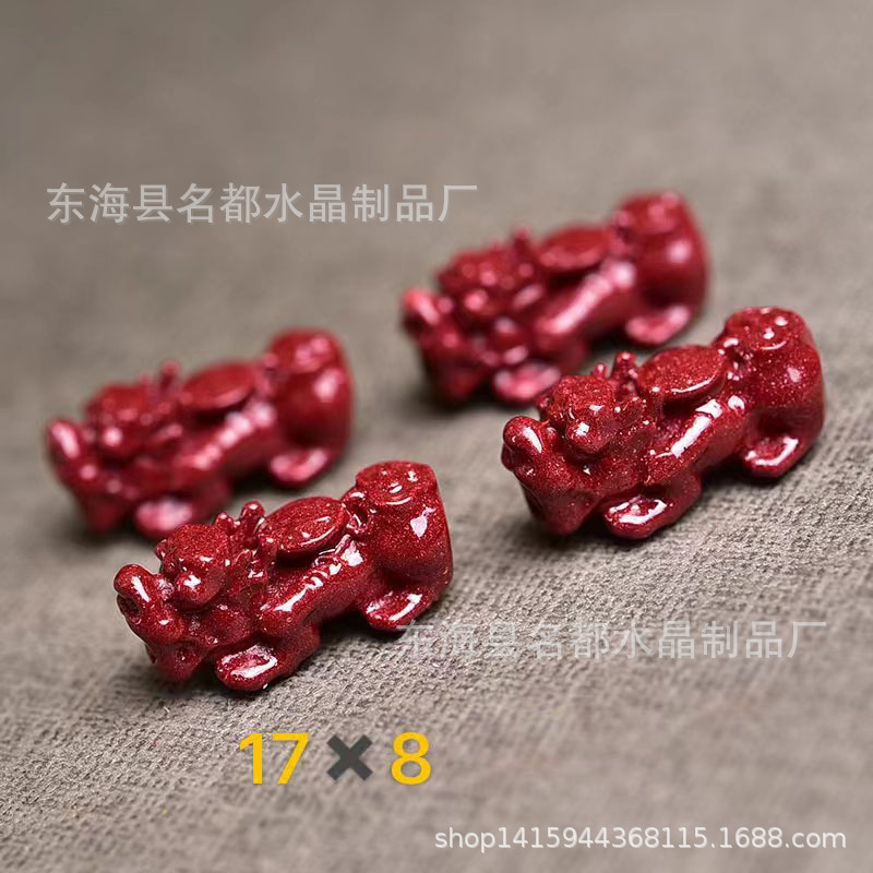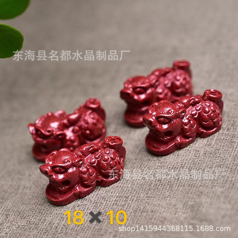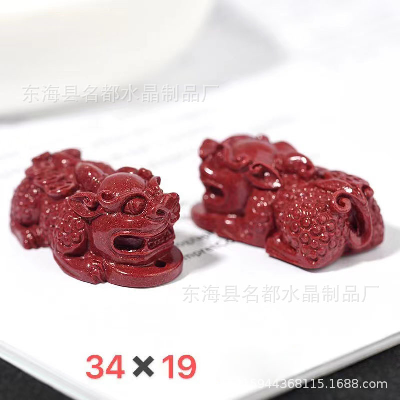 名都水晶 天然原矿朱砂貔貅配件 横穿 紫砂孔貔貅 手链配饰 批发