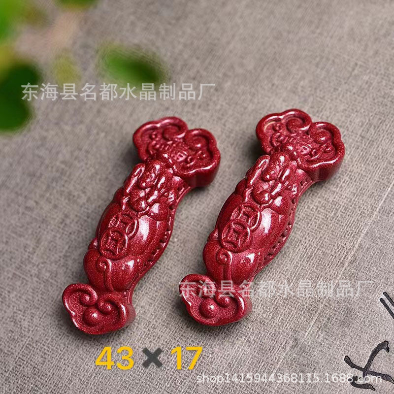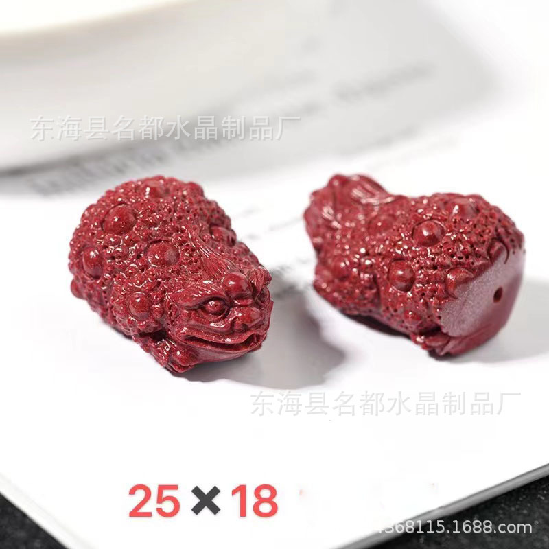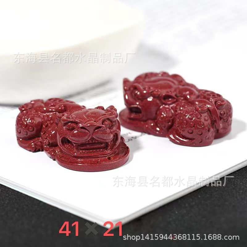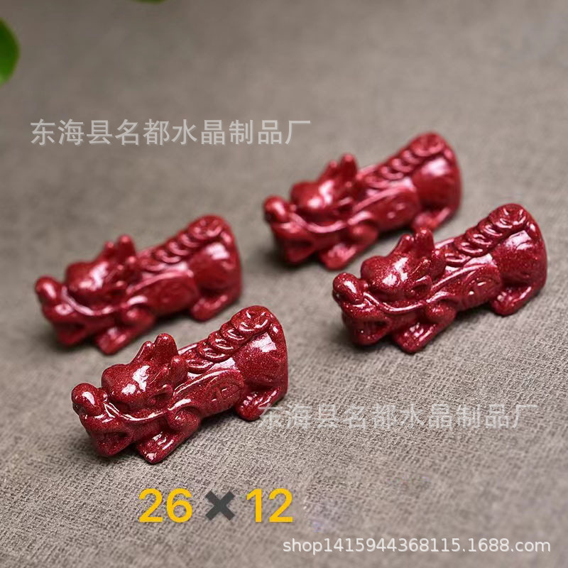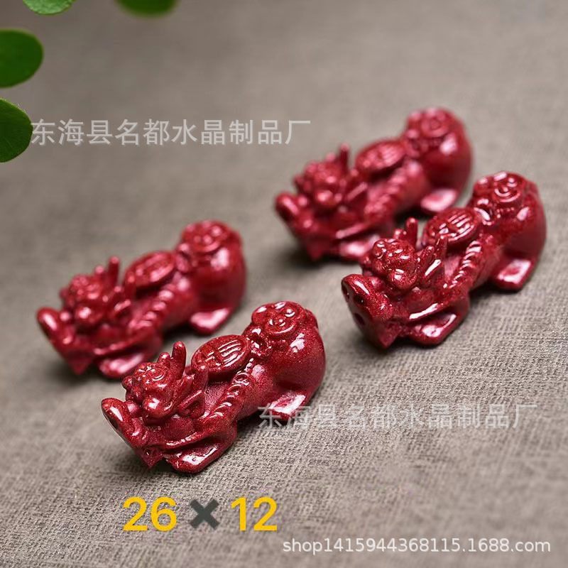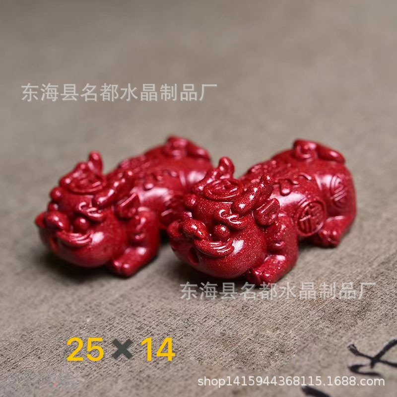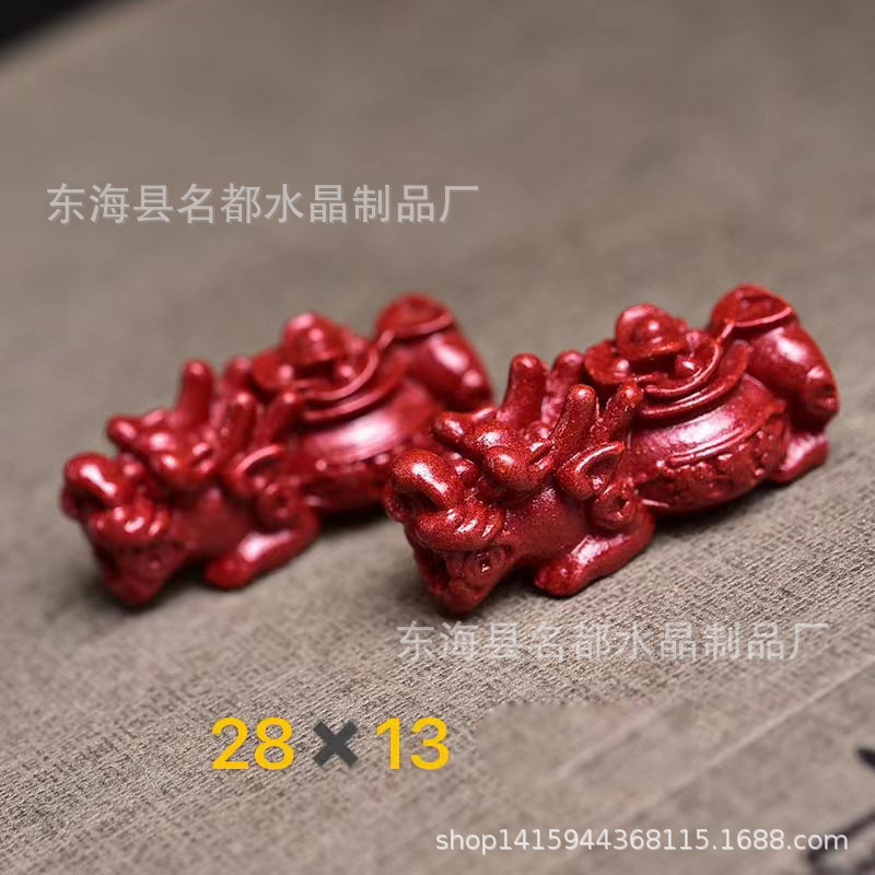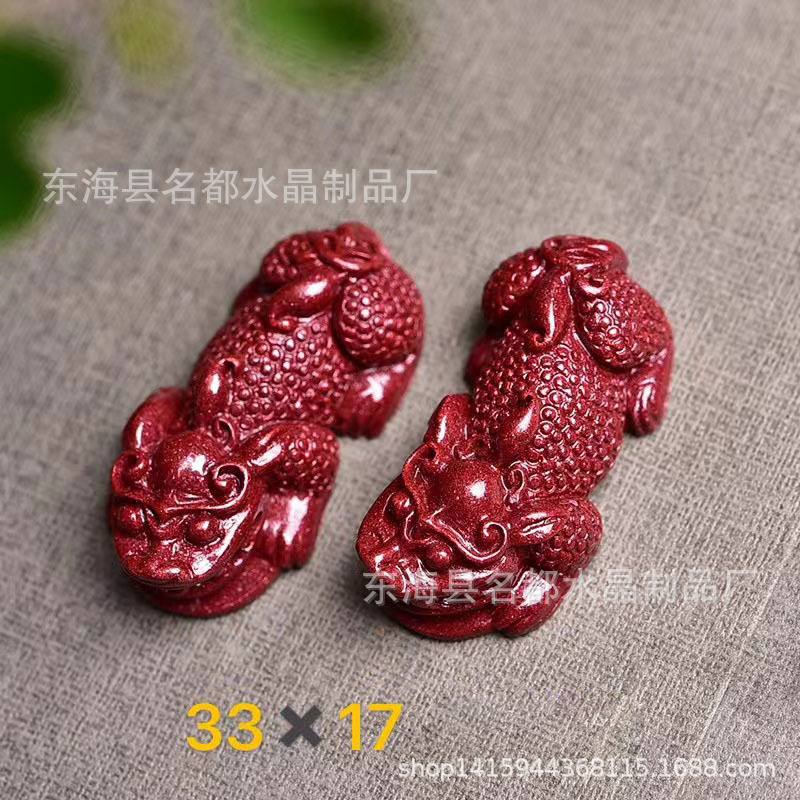 名都水晶 天然原矿朱砂貔貅配件 横穿 紫砂孔貔貅 手链配饰 批发