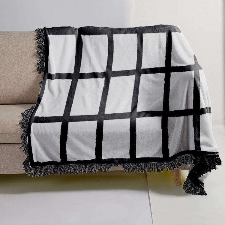 单面3D印花双面法兰绒毛毯黑白九宫保暖午睡盖毯【热转印素材】