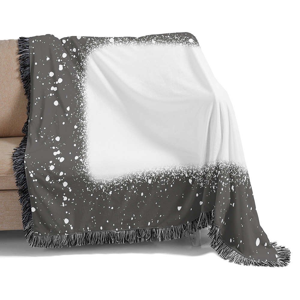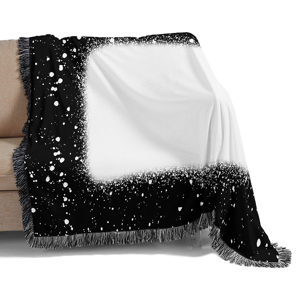 双面法兰绒毯子 办公室宿舍午睡扎染带黑色花边毛毯【来图可定】