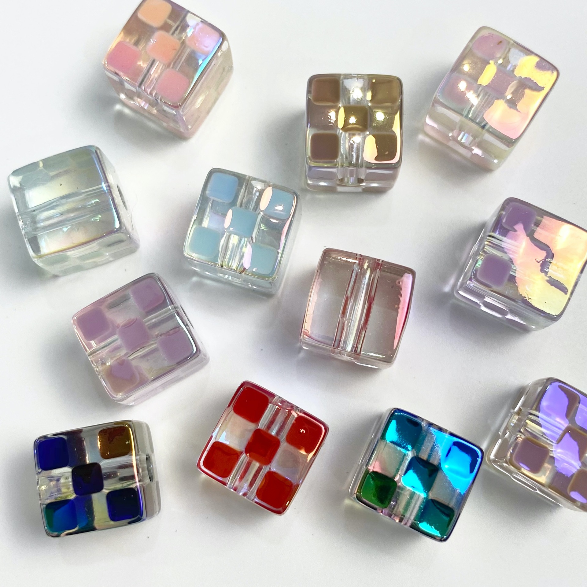 14mm七彩阳光滴油魔方diy手链串珠材料炫彩镀彩方块直孔饰品配件