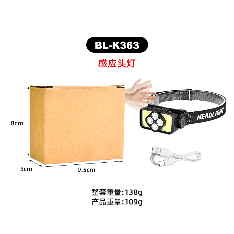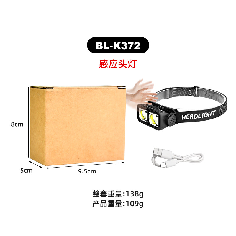 2023 COB感应头灯LED强光头戴式感应头灯USB充电夜跑步灯强光头灯