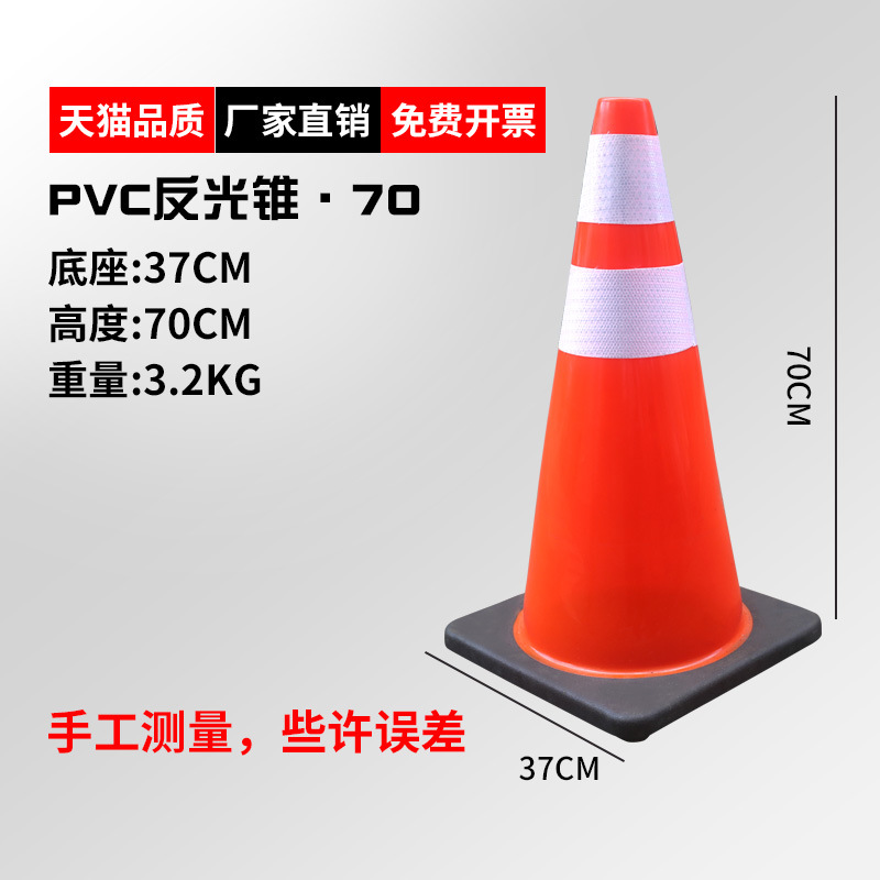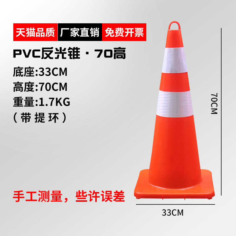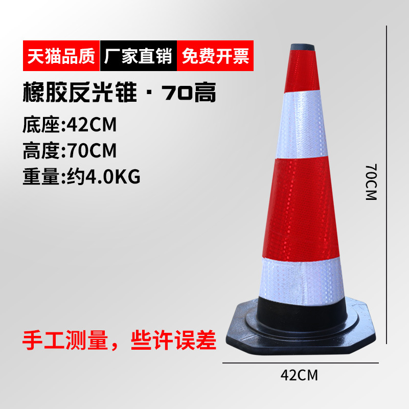 70cm橡胶路锥反光路障锥90cm雪糕筒锥形桶隔离墩警示柱施工安全锥