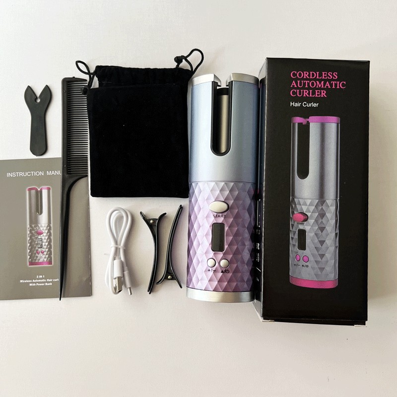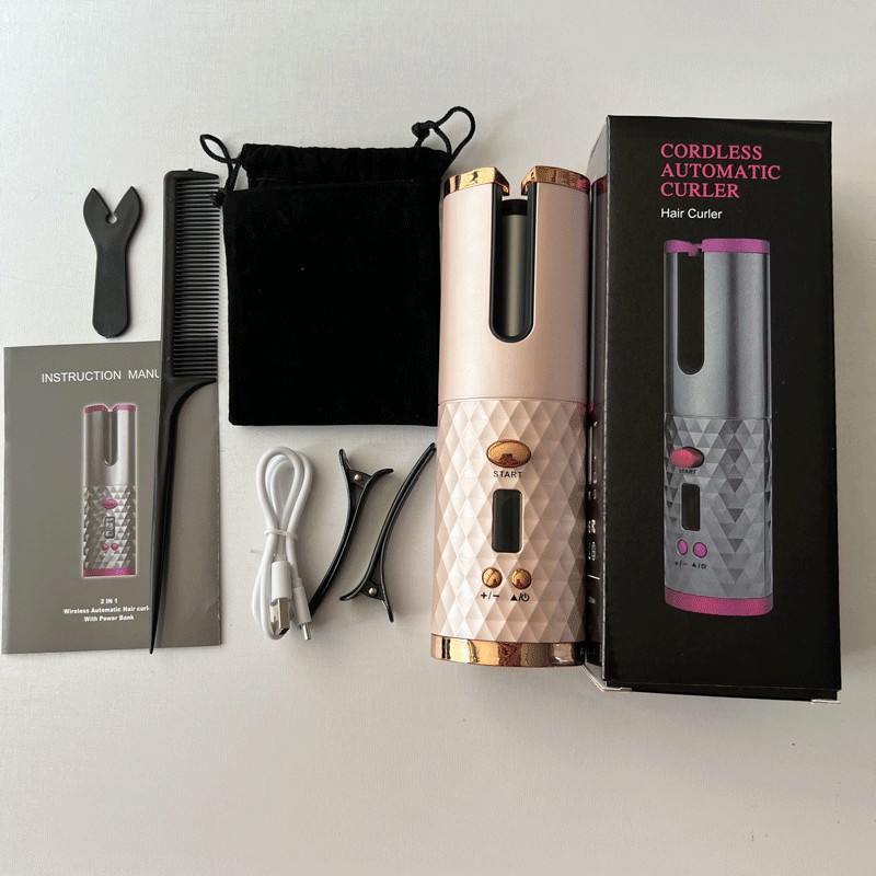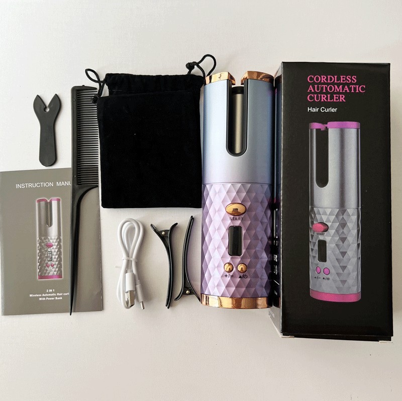 跨境 便携式usb充电自动卷发器多功能智能无线液晶懒人卷发棒厂家