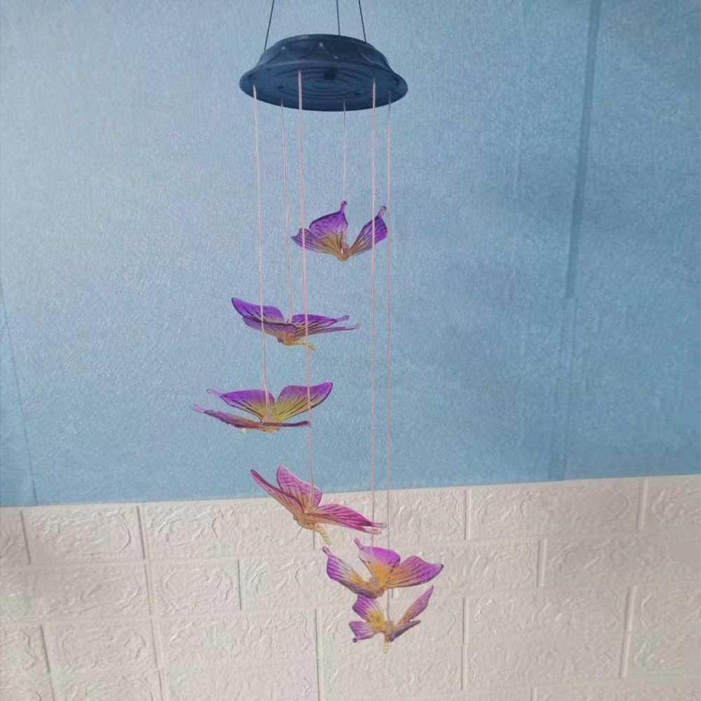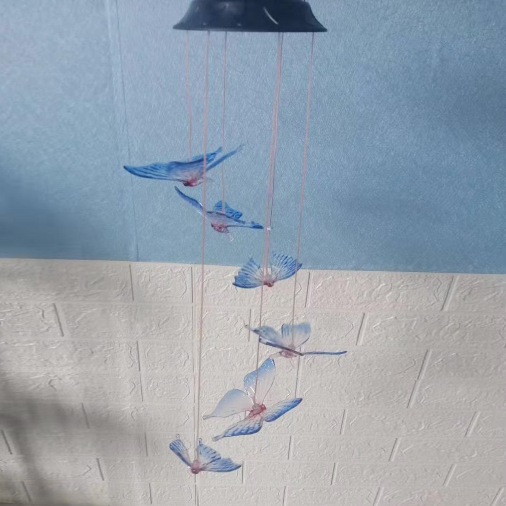 太阳能风铃灯蜂鸟铃铛户外防水阳台装饰吊灯花园庭院景观七彩风铃