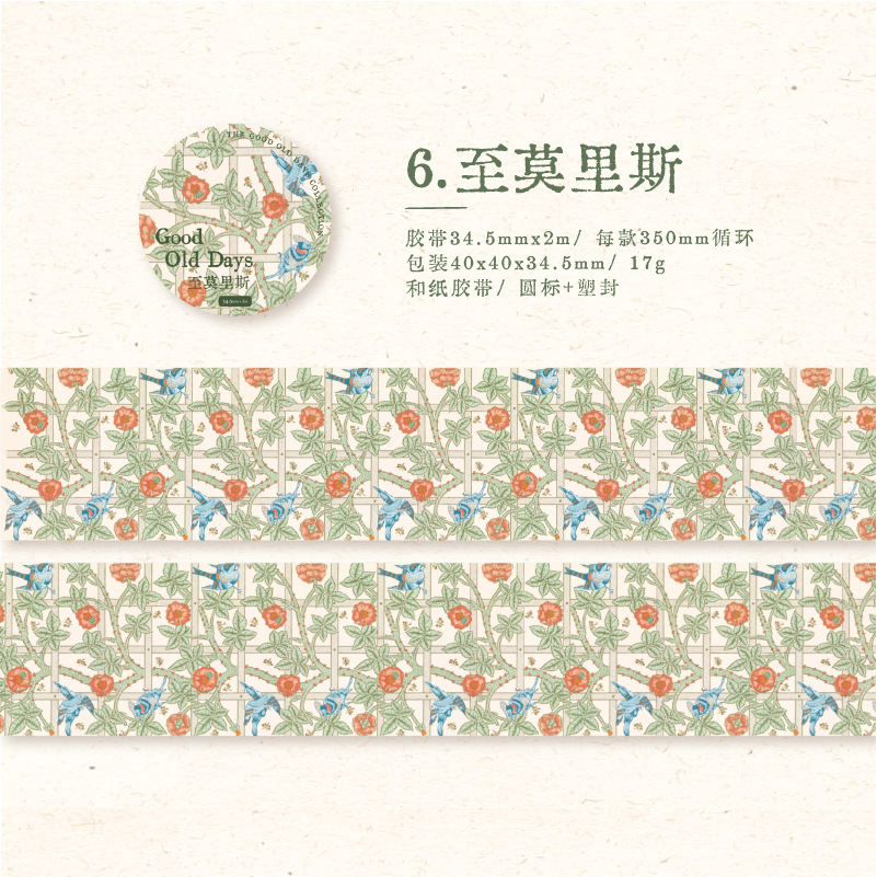 和纸胶带 美好旧日系列复古蝴蝶花卉英文DIY手帐装饰素材贴画