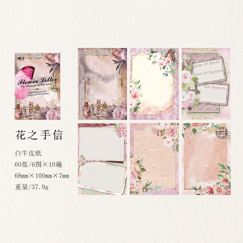 便签本 岁月信使系列 复古旧物拼贴清新格子花卉装饰留言素材