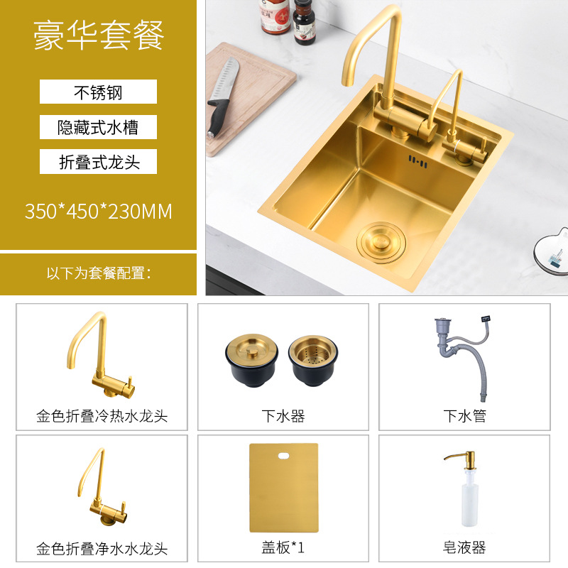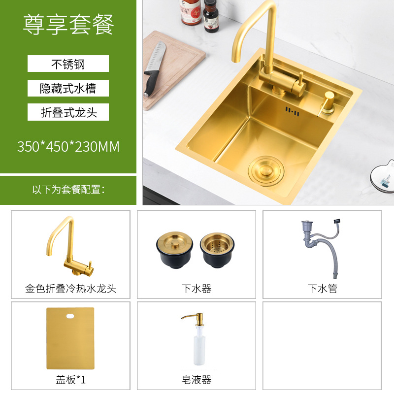 金色隐形小水槽单槽隐藏式中岛台吧台洗手池304不锈钢厨房洗菜盆