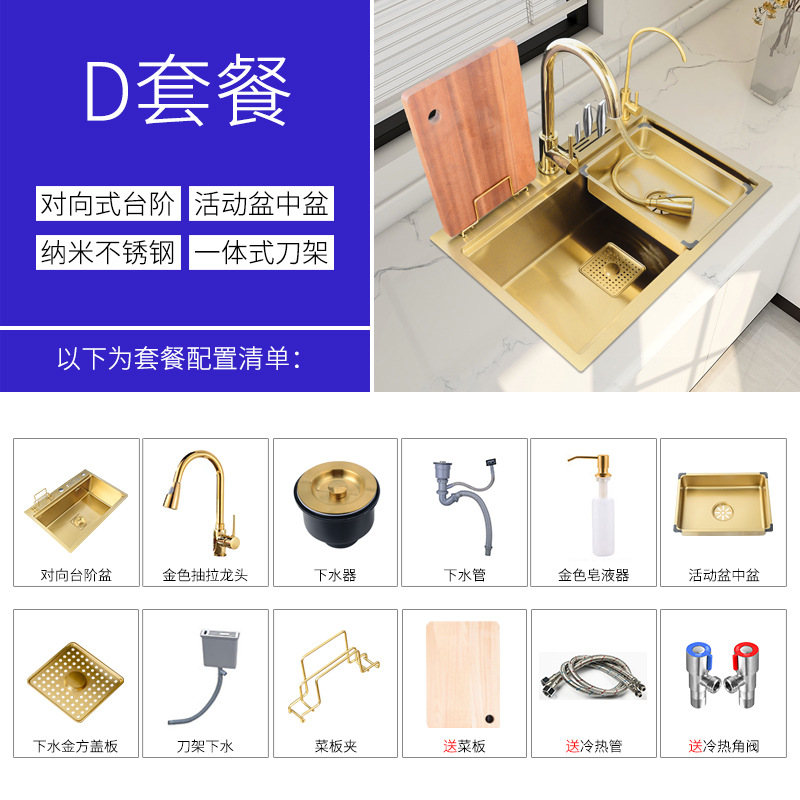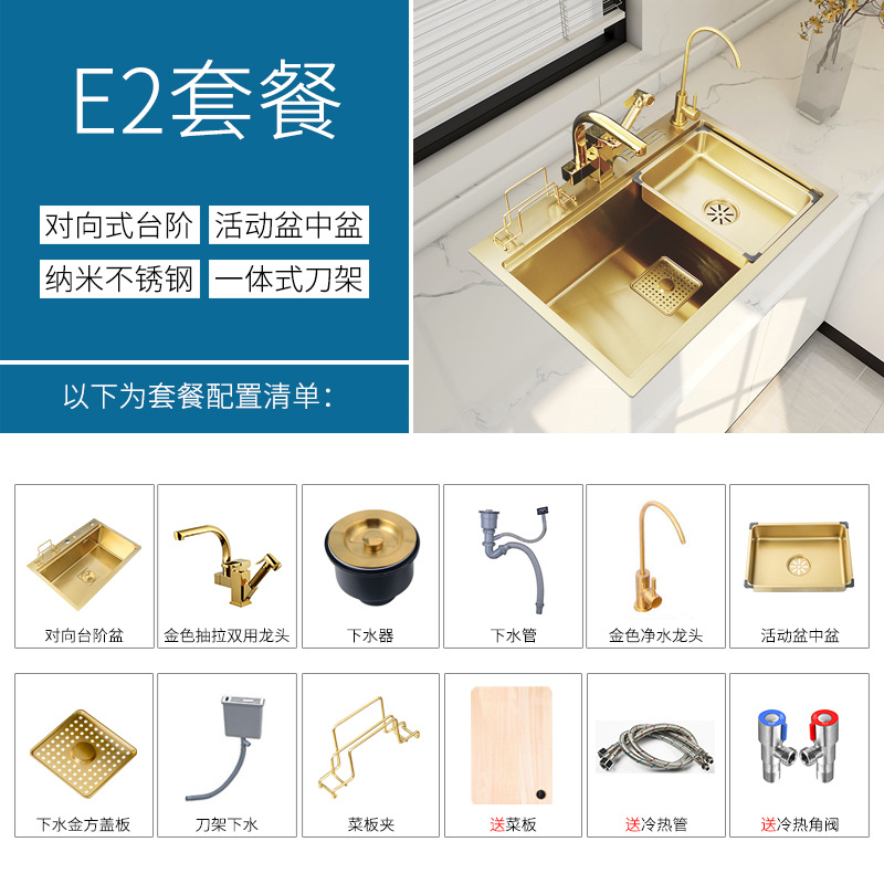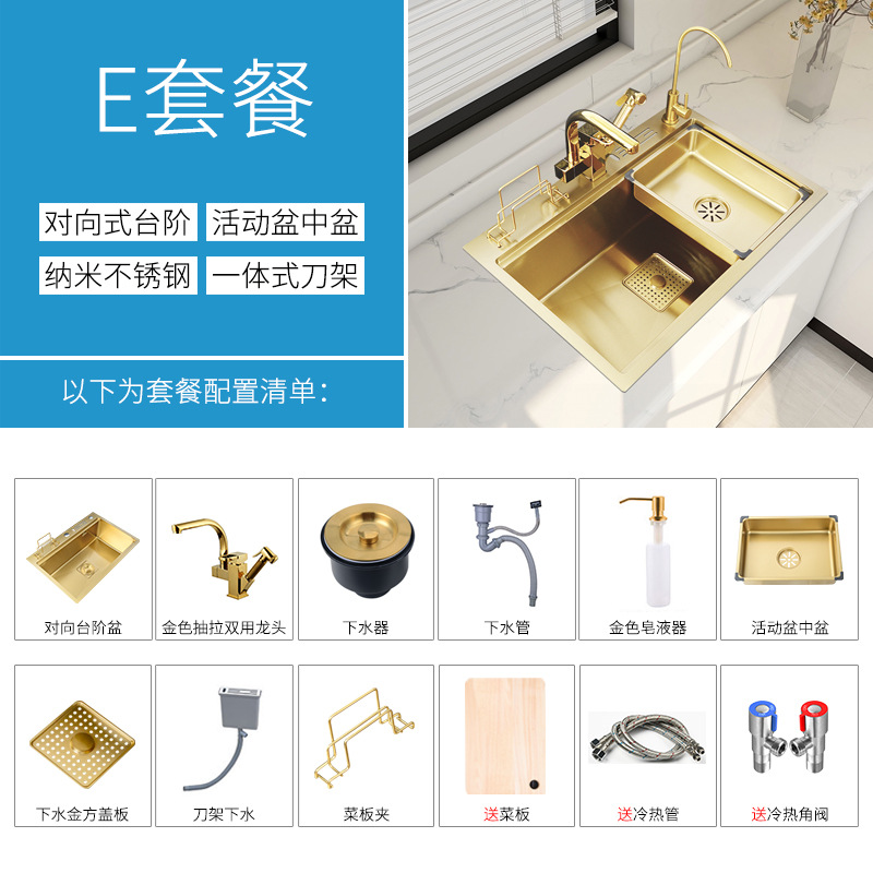 水槽金色304不锈钢大单槽厨房洗菜盆多功能水槽台下盆家用洗碗槽