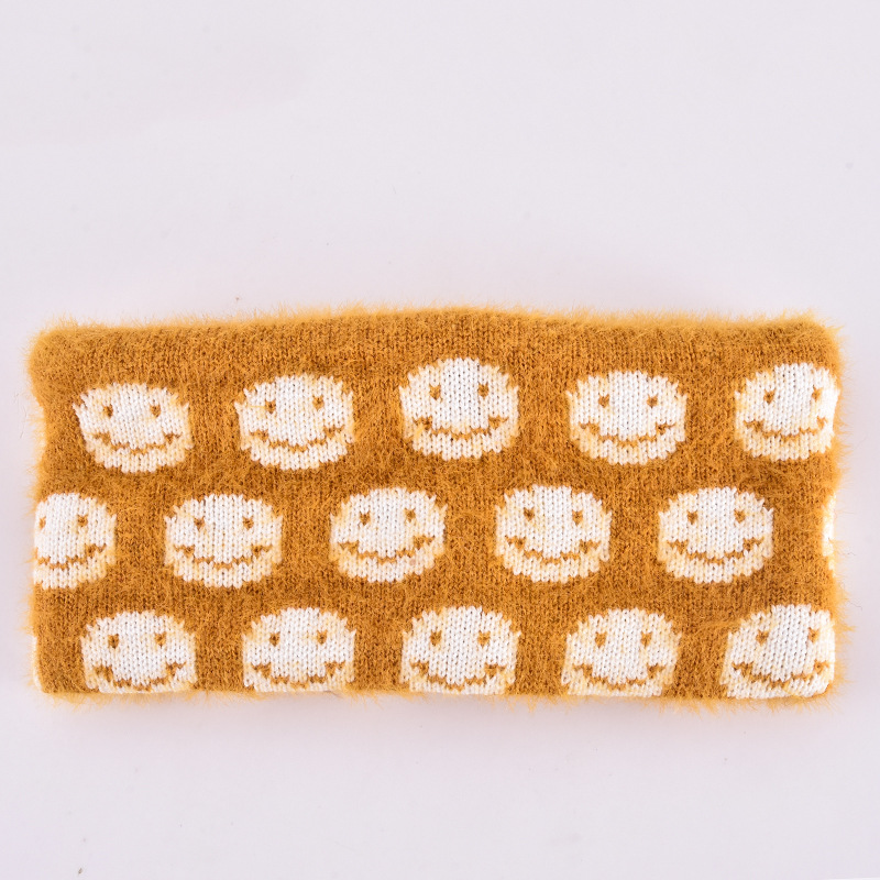 韩国复古笑脸针织发带宽边小众洗脸束发带运动头饰秋冬时尚发箍