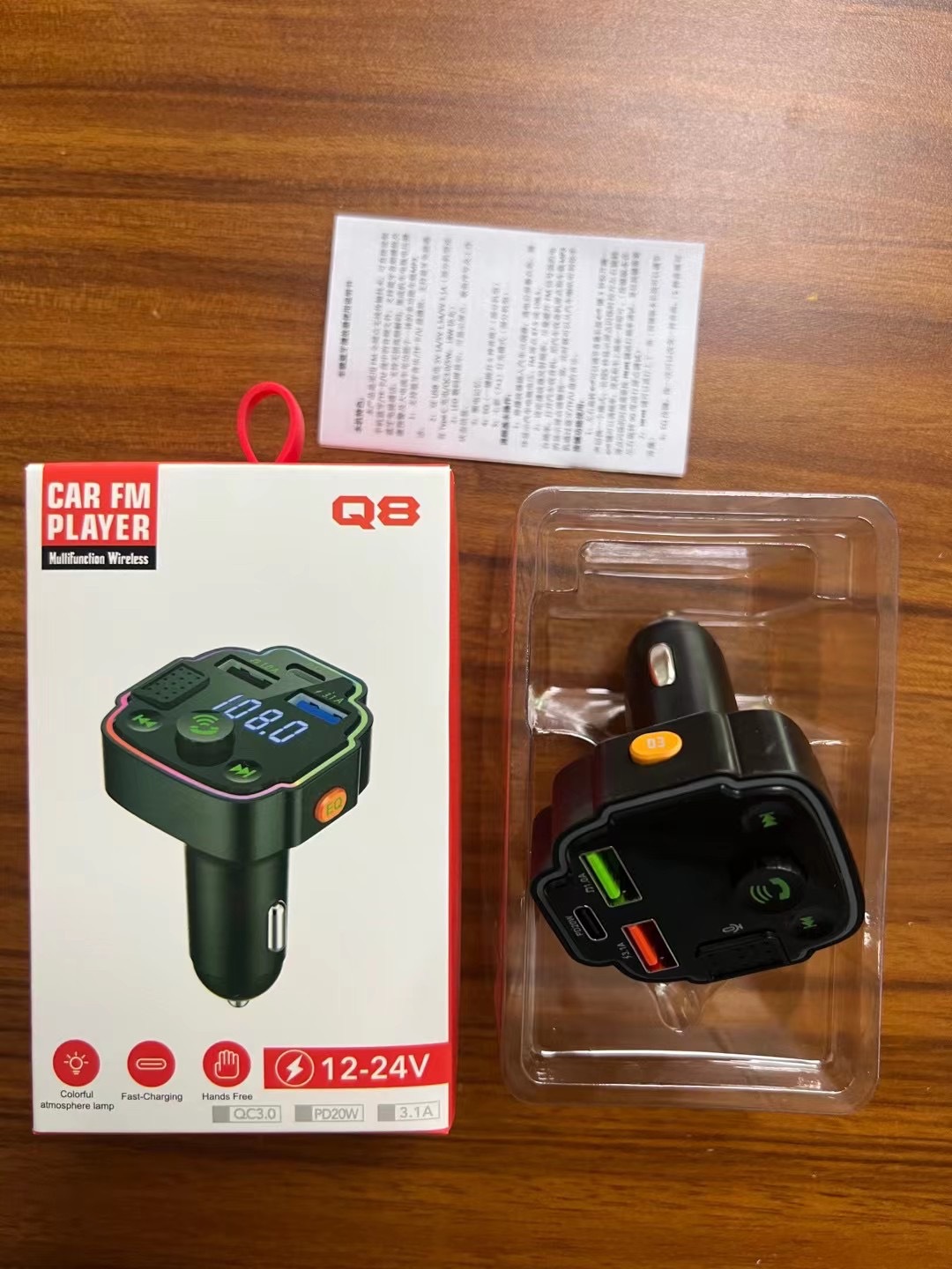 车载usb充电器电压免提车载蓝牙彩盒套装充电器