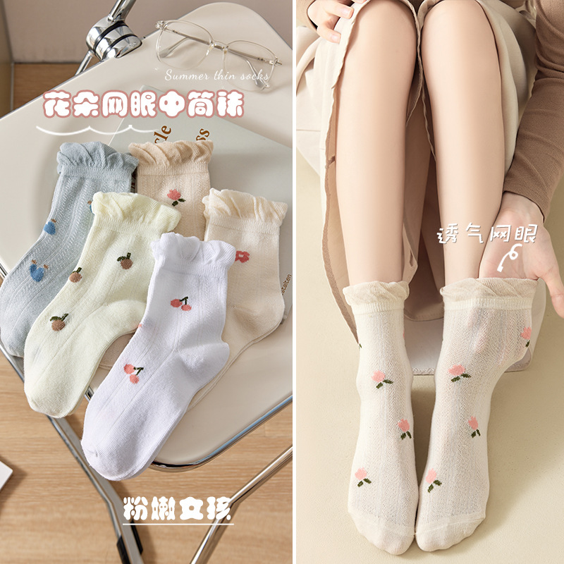 中筒袜【松口花朵】*均码【35-42】