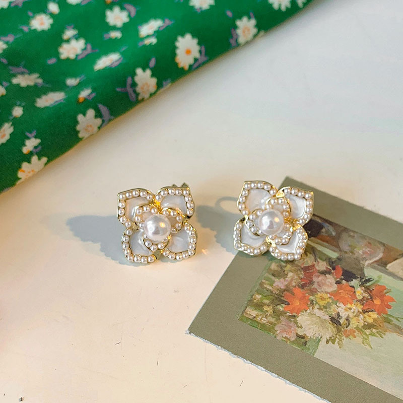 E119米白色花朵耳夹款