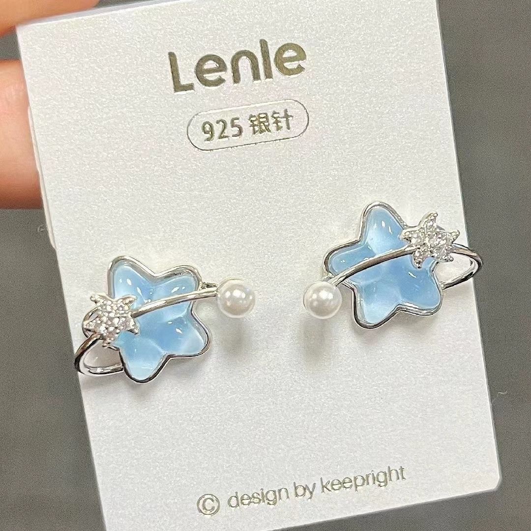 太适合夏天啦~超仙2023爆款海盐蓝清透星星百搭小众设计耳饰耳环