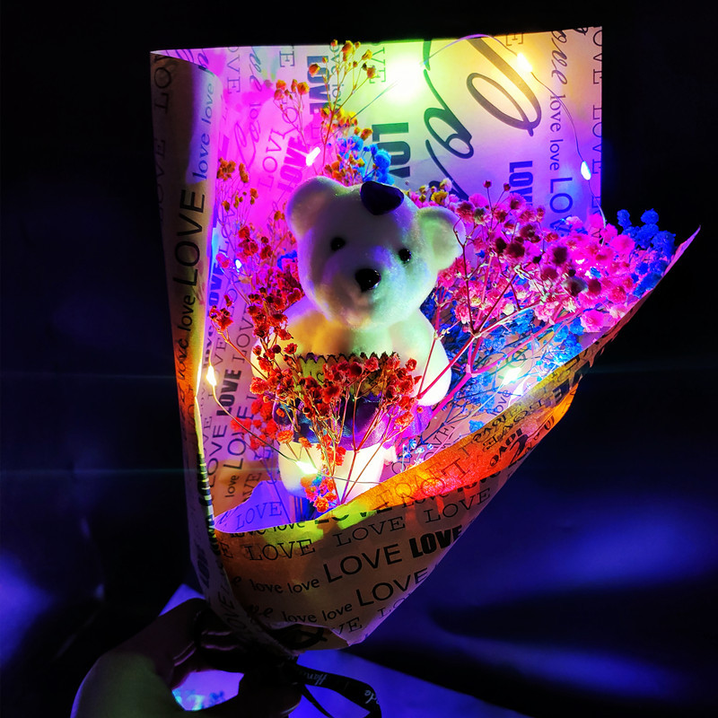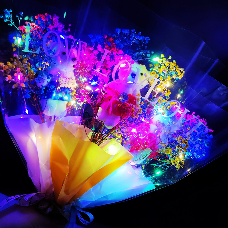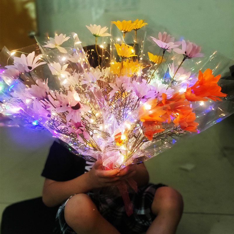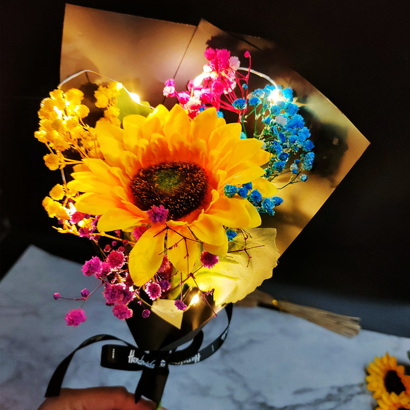 新款大号发光永生花满天星绢花小雏菊太阳花玫瑰花情人节礼品夜市