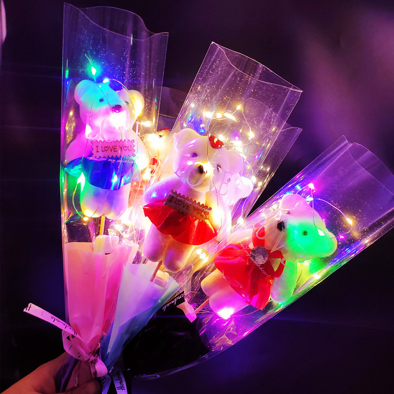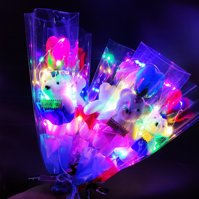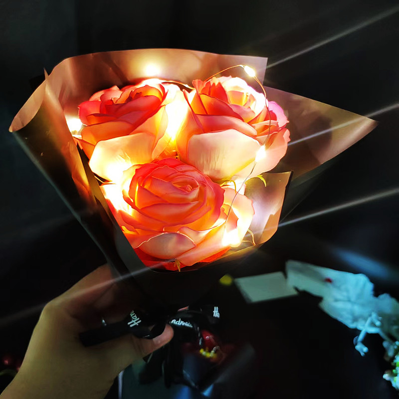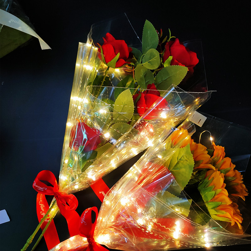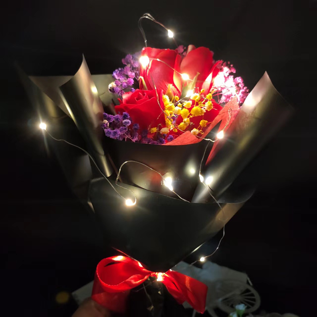 新款大号发光永生花满天星绢花小雏菊太阳花玫瑰花情人节礼品夜市