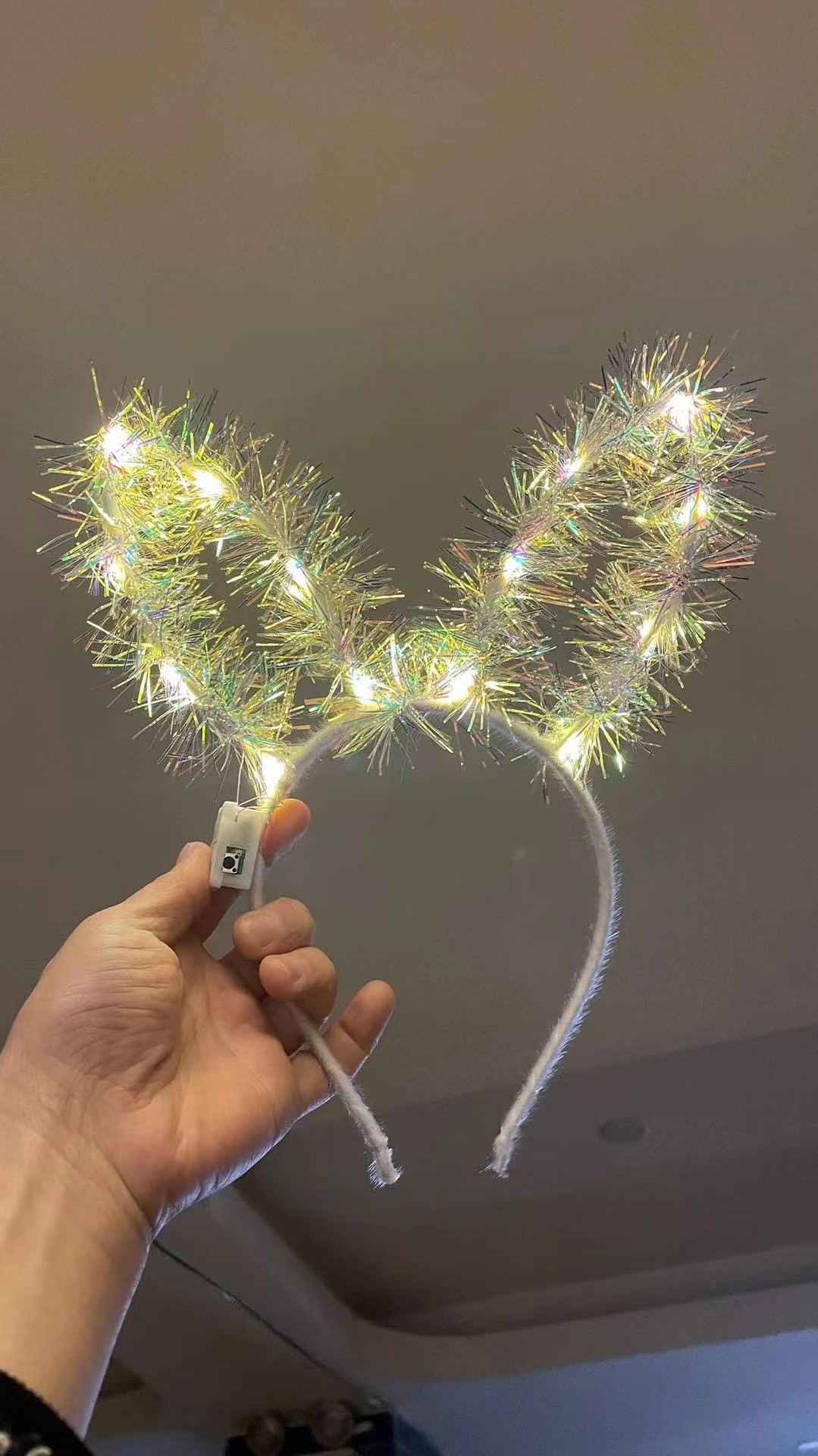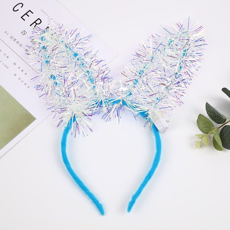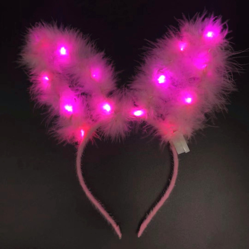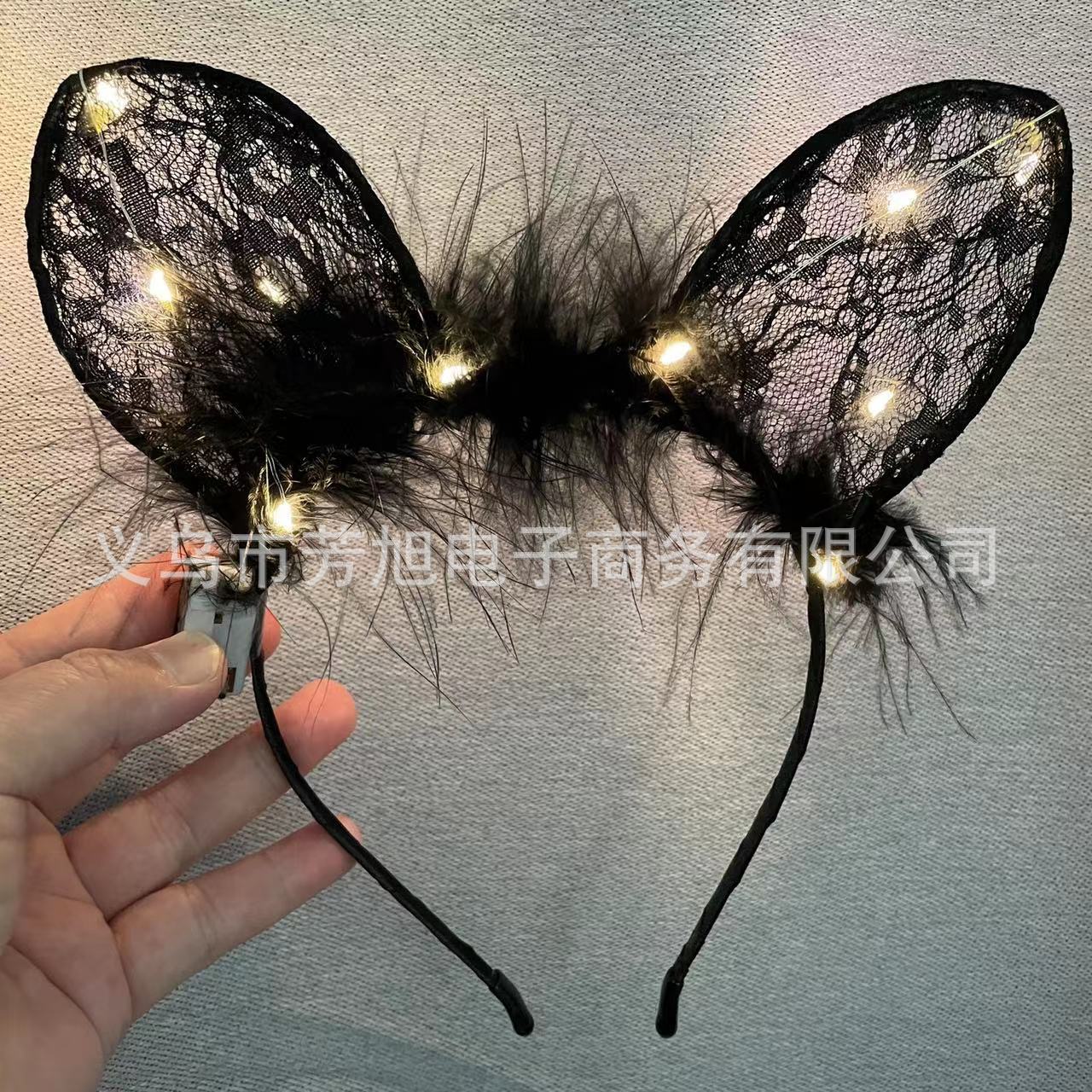 高亮14灯羽毛兔耳朵发光发箍 地推金丝猫耳朵头箍玩具礼品批发