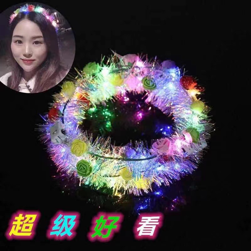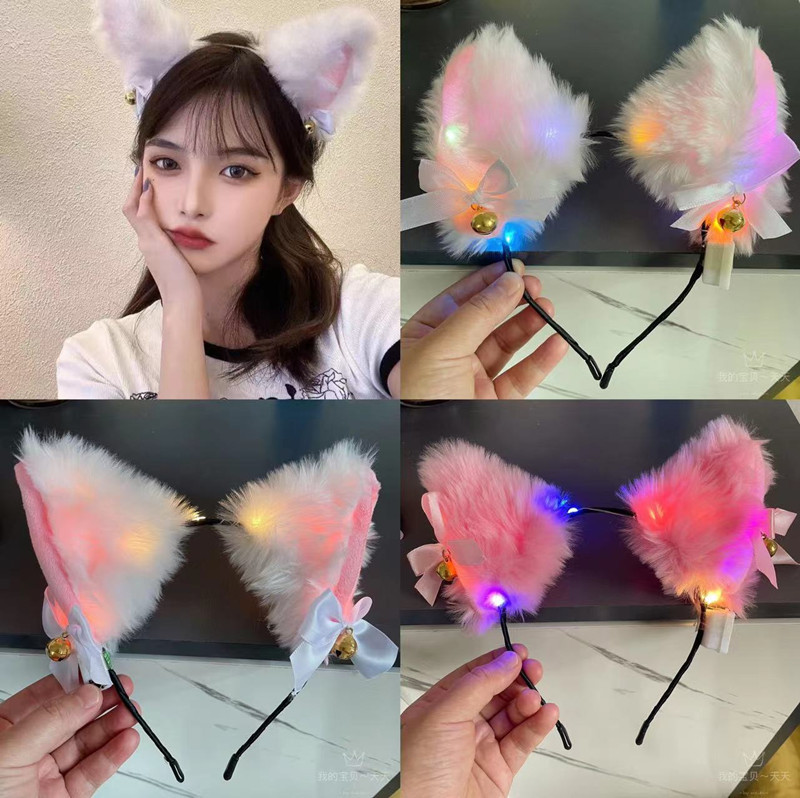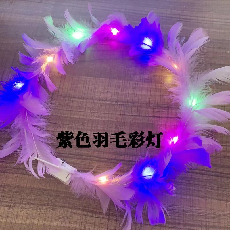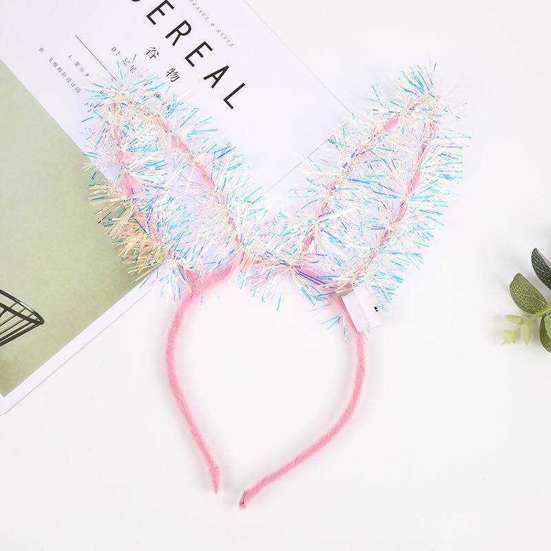高亮14灯羽毛兔耳朵发光发箍 地推金丝猫耳朵头箍玩具礼品批发