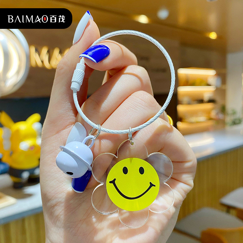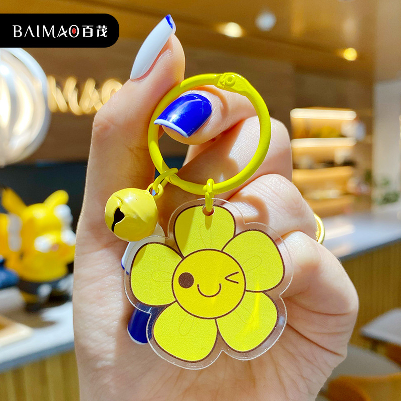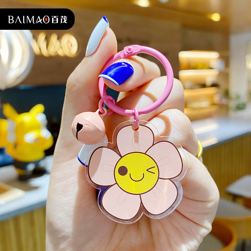 百茂卡通DIY小花亚克力精致钥匙扣潮流时尚汽车钥匙链包包小挂饰