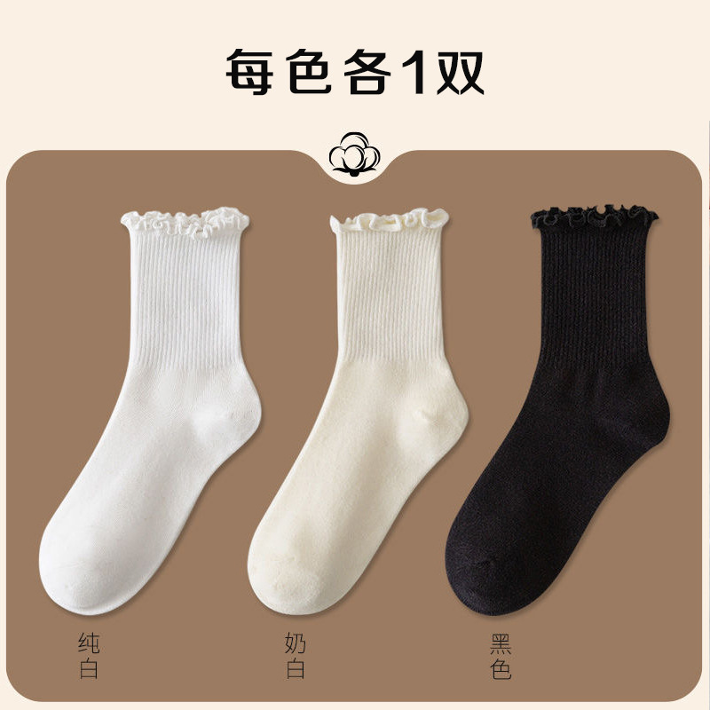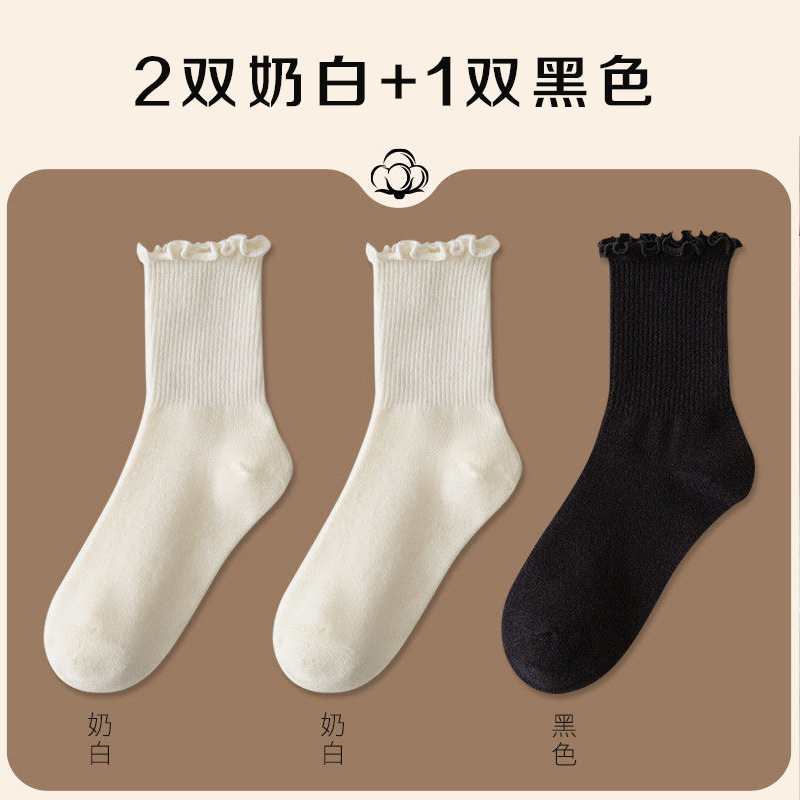 3双【2奶白1黑】*花边jk袜