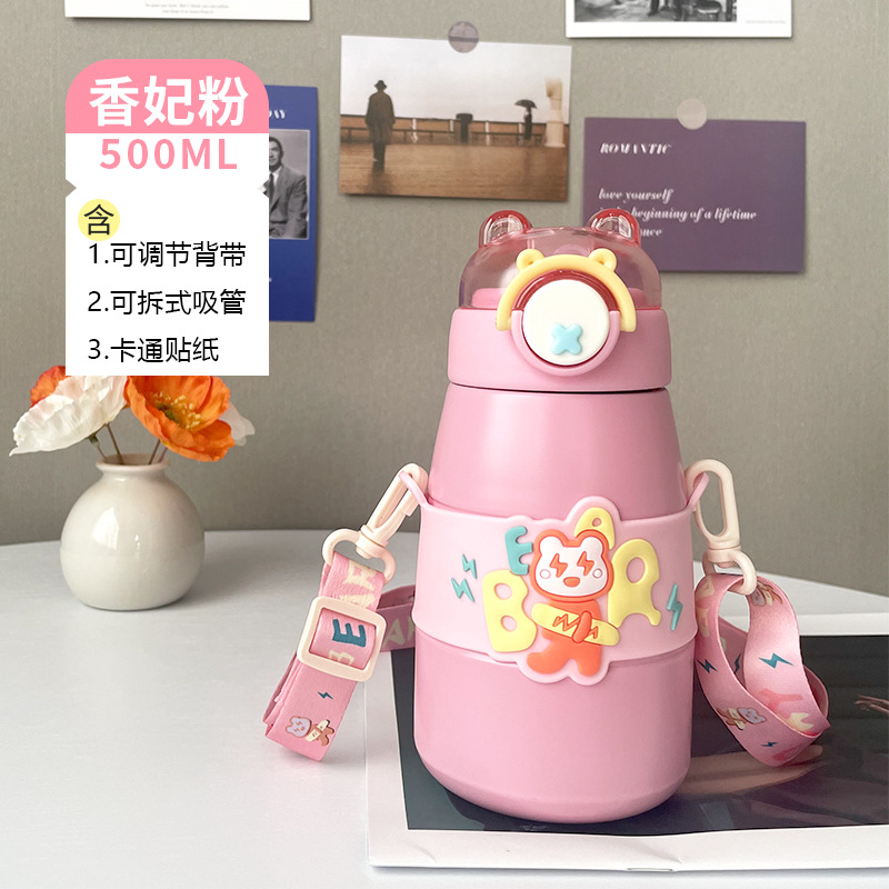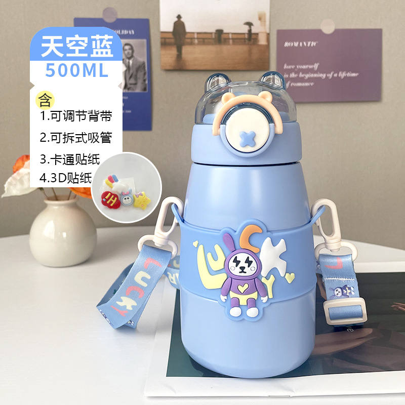 316不锈钢颜值卡通拽拽熊弹跳小孩保温杯儿童可爱大容量保温水杯