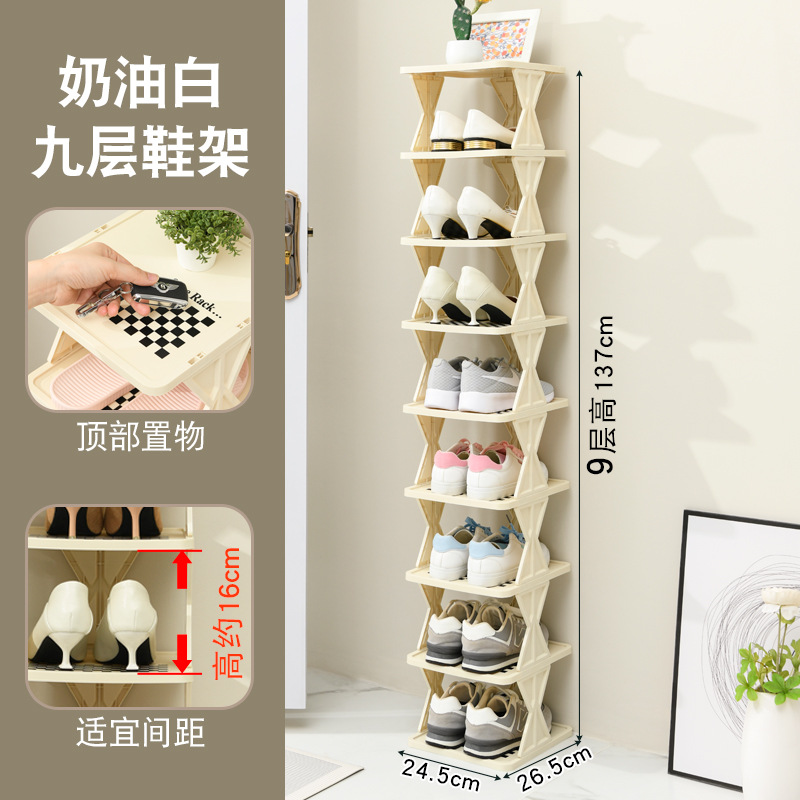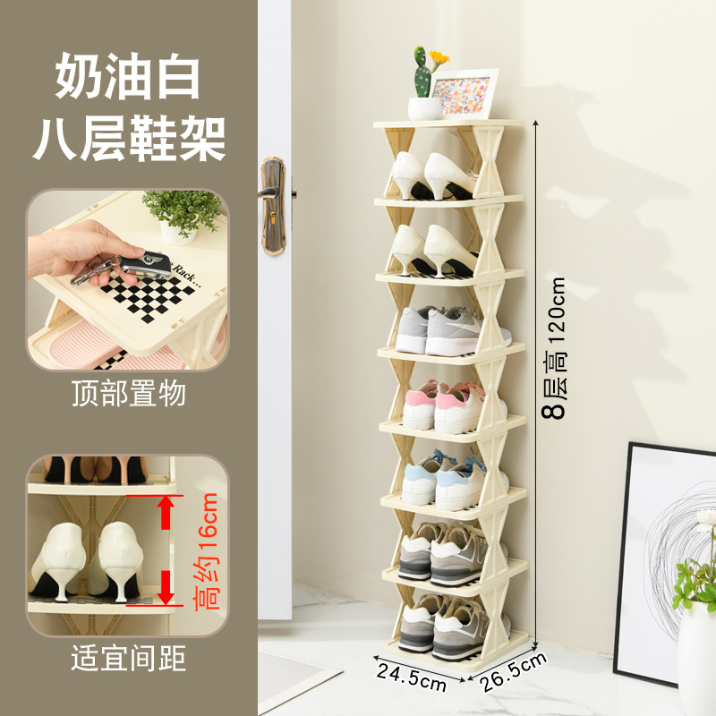 家用门口棋盘格鞋架 入门夹缝办公室宿舍鞋柜 多层防尘收纳鞋架子