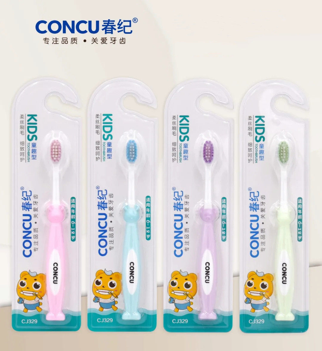 春纪CJ329儿童牙刷童趣型柔丝刷毛清洁细致呵护牙龈防蛀6-12岁